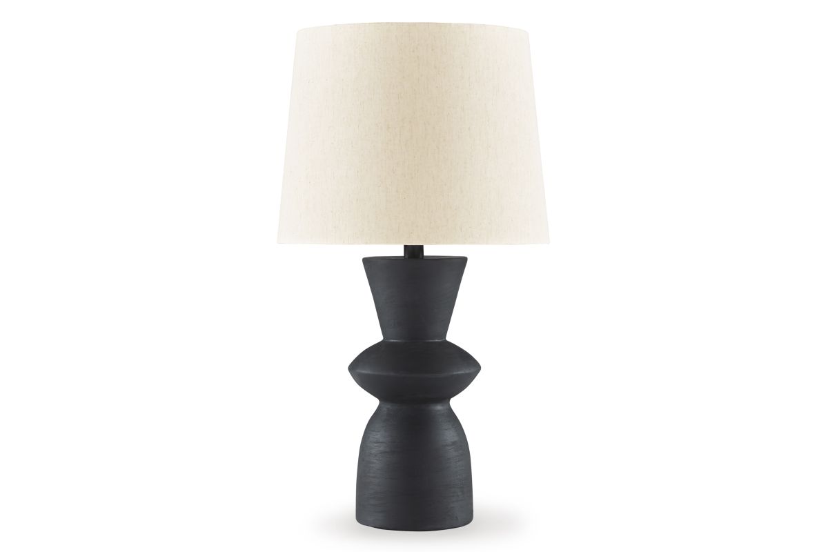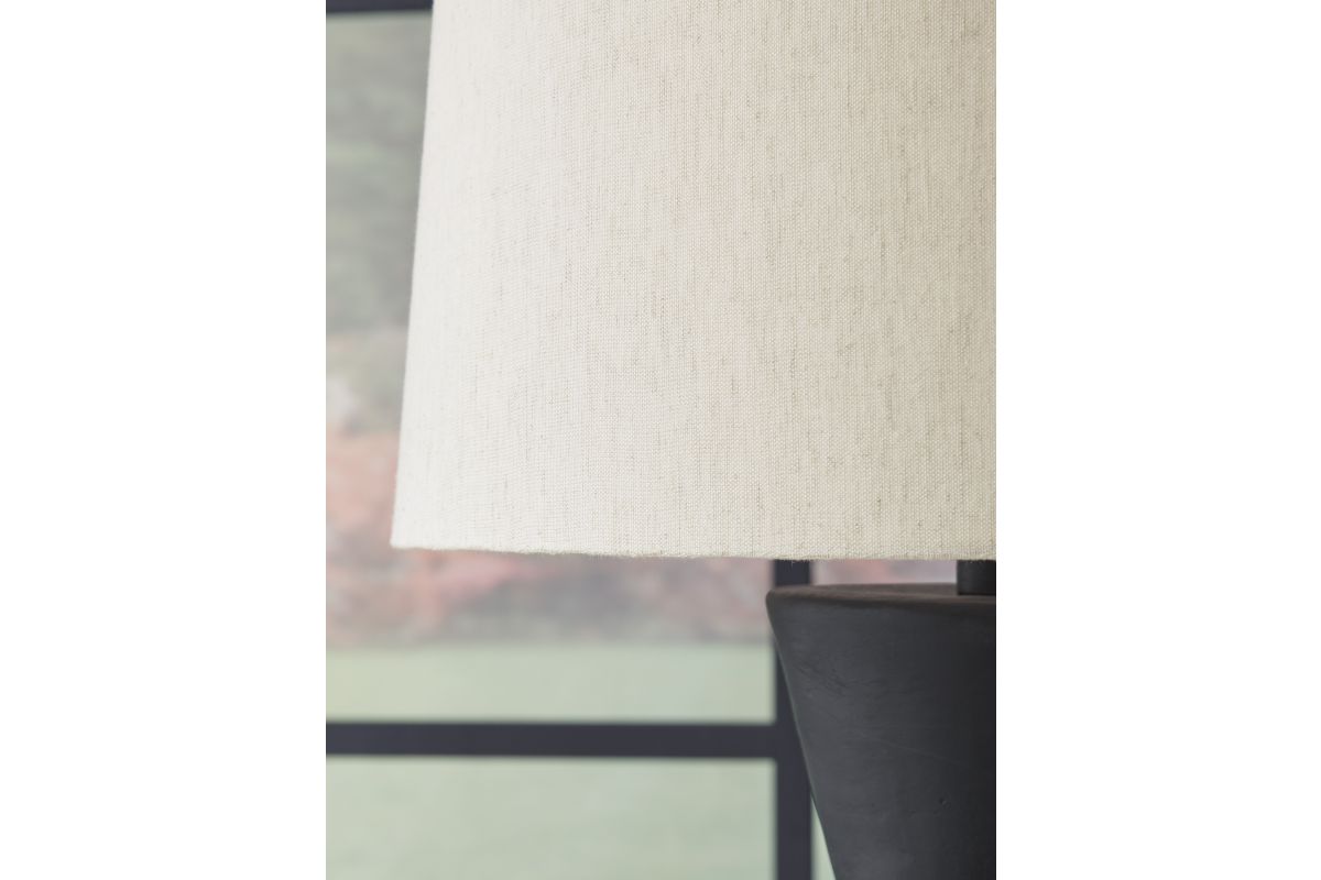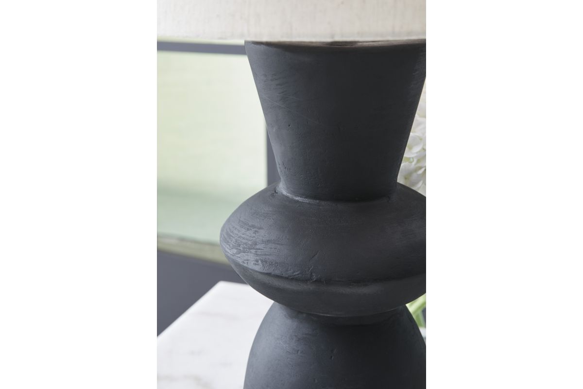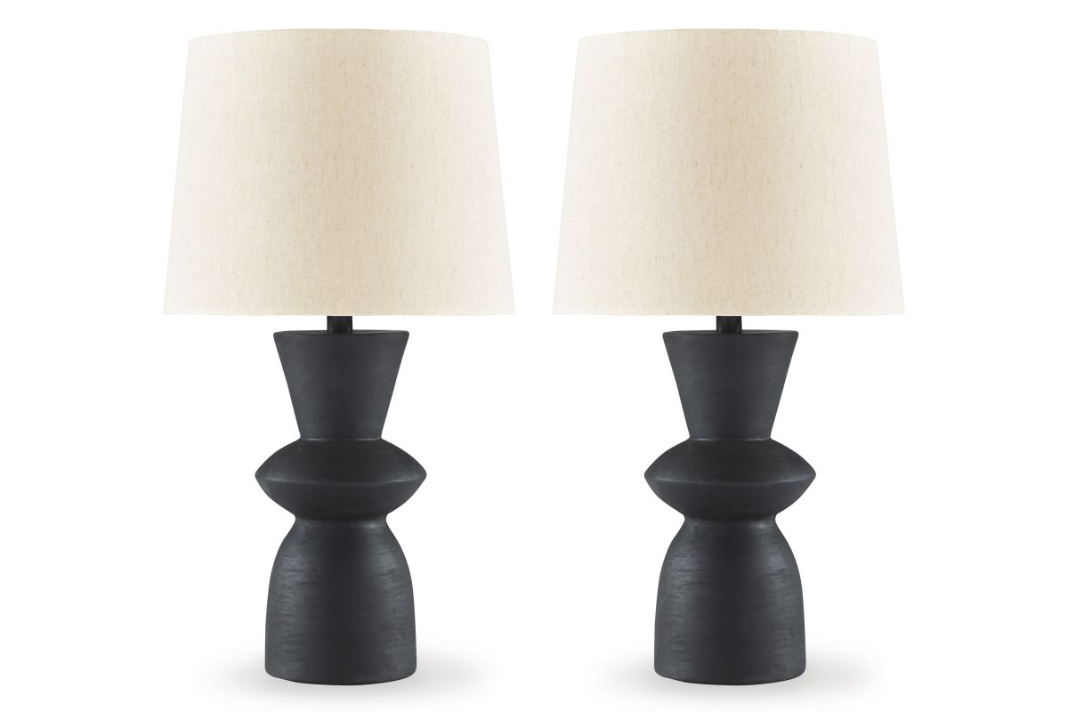 Turn on the brilliance and modern flair of this table lamp set. The angular silhouette and intriguing base in distressed black are the definition of bold style. These lamps pair wonderfully with contemporary furniture.