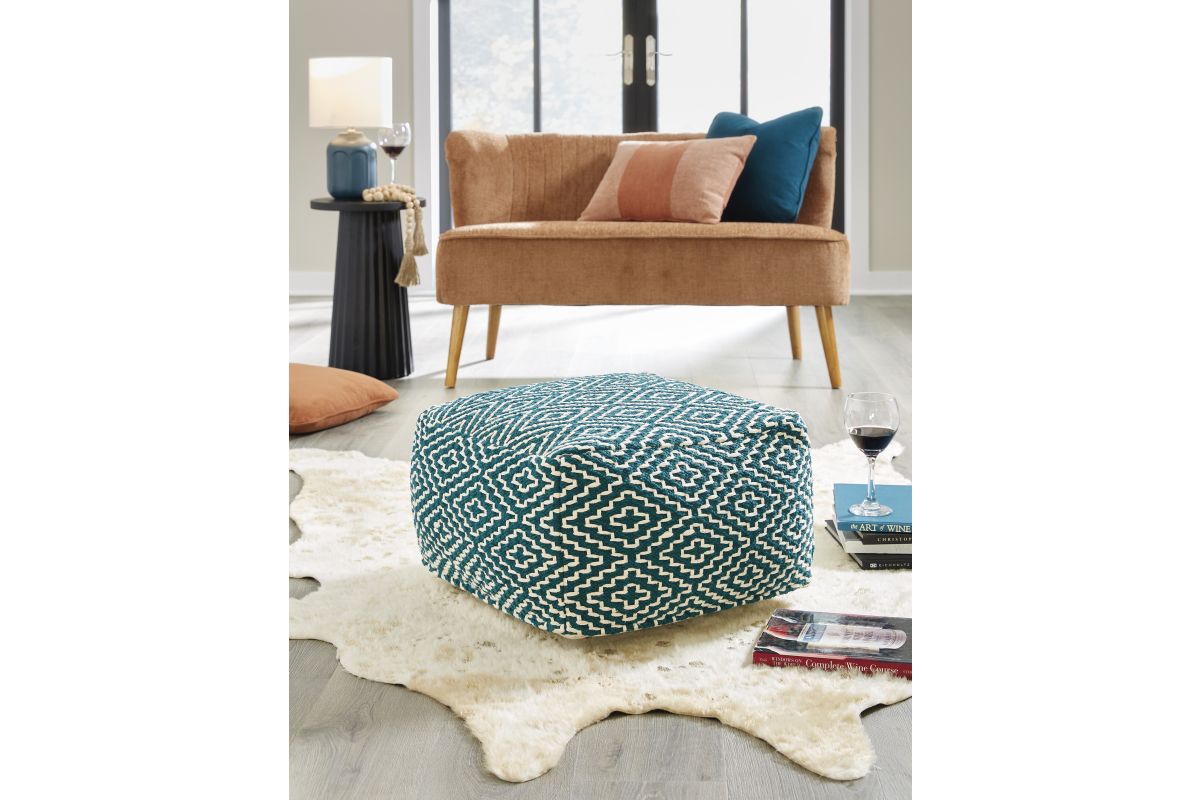 This handwoven pouf is like eye candy for your decor. The perfect perch for kicking up your feet at the end of a long day, it can also be topped with a tray for an instant end table. You'll love how beautifully the pouf's on-trend geometric design blends in.