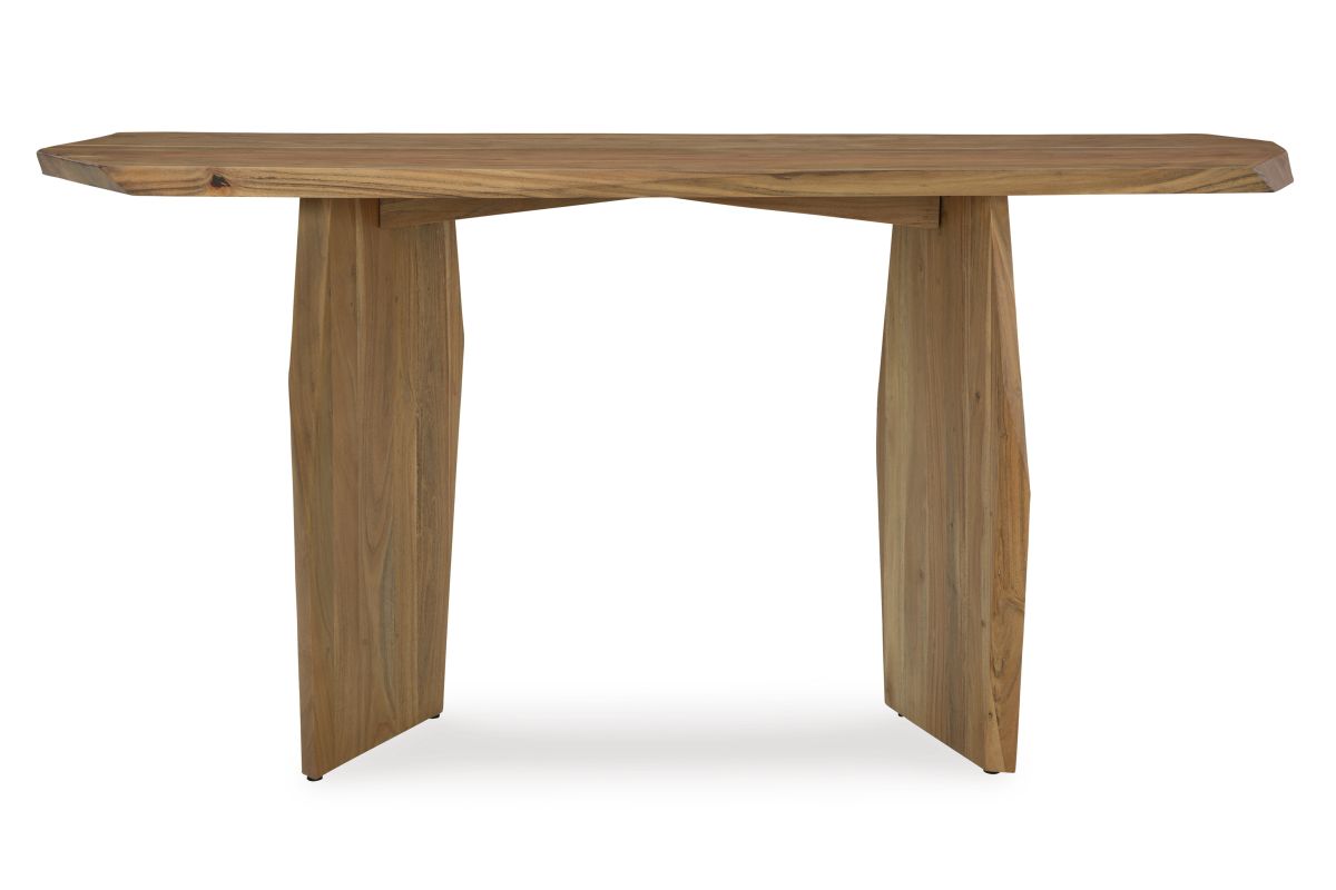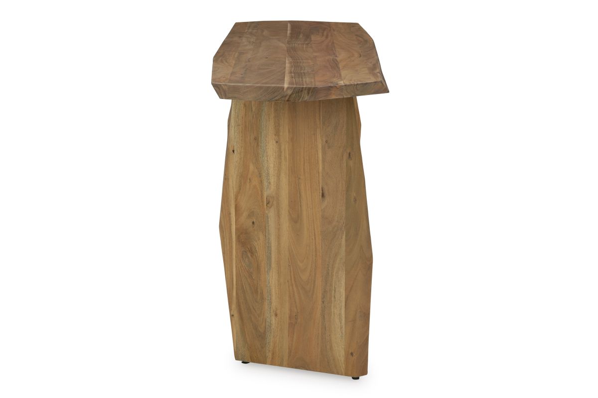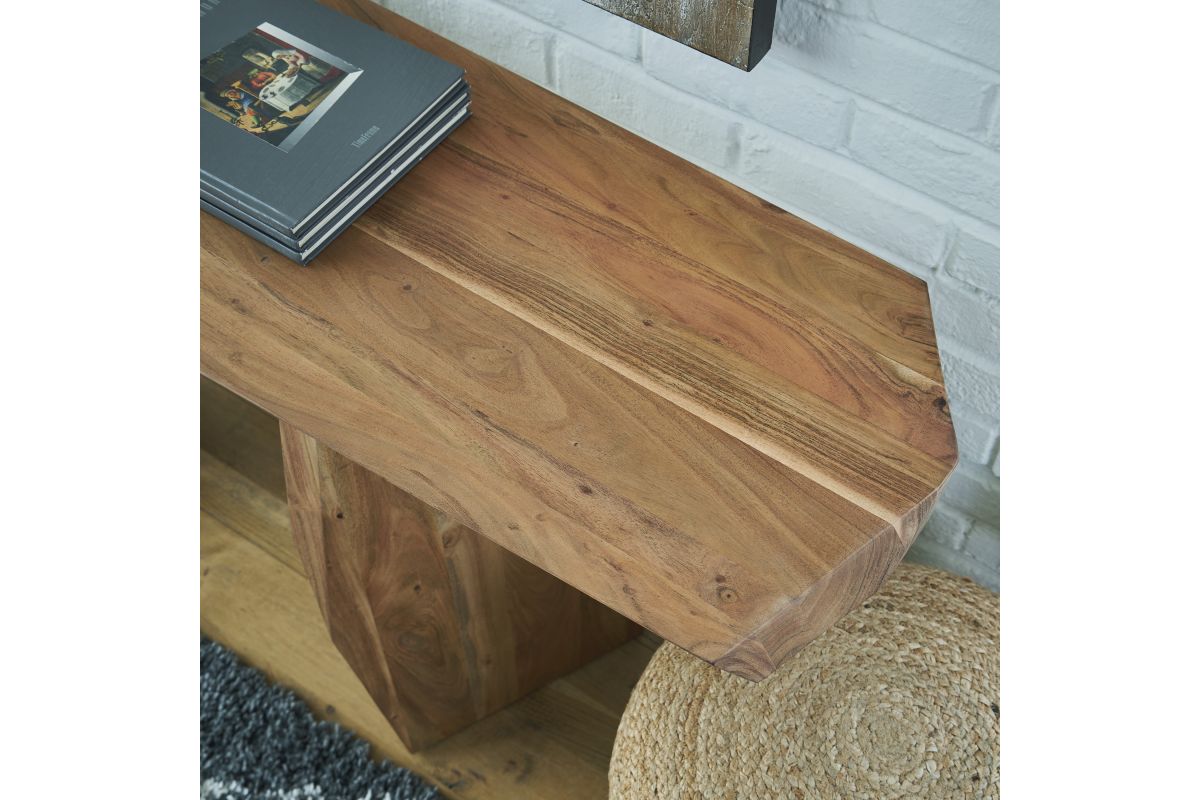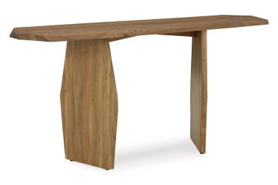 In a word - wow. With its irregularly shaped top and legs, this console table is a spectacular study in contemporary style. The imaginative piece brings nature indoors, with solid wood in a relaxed natural finish that appeals to your earthy sensibilities. Make this innovative table yours by adorning it with handsome decor in the entryway or behind your sofa.