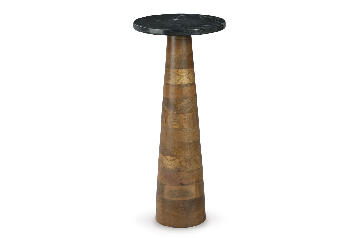 Blending the beauty of marble and wood, this accent table is eager to host your decorative accents or help keep relaxation essentials on hand. Its poised, slim form easily fits between a sofa and loveseat. Stunning in its simplicity, you�ll love the elevated look it brings to your lounge area.