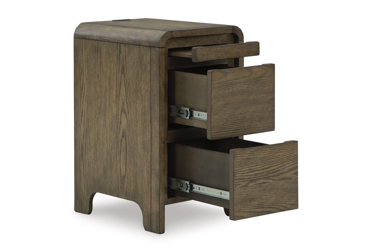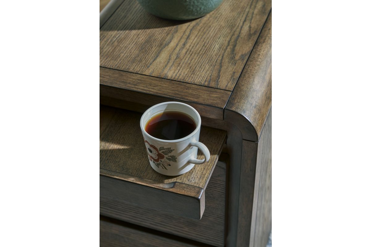 In the market for furniture that combines contemporary form with smart functionality? Look no further than this accent table. Its drawers keep essentials within reach, while the pull-out tray easily holds nibbles and drinks. And its USB charging options make it easy to stay powered up. Hosting or lounging, this table has you covered in style.