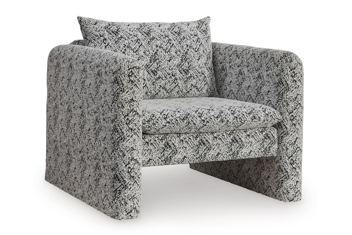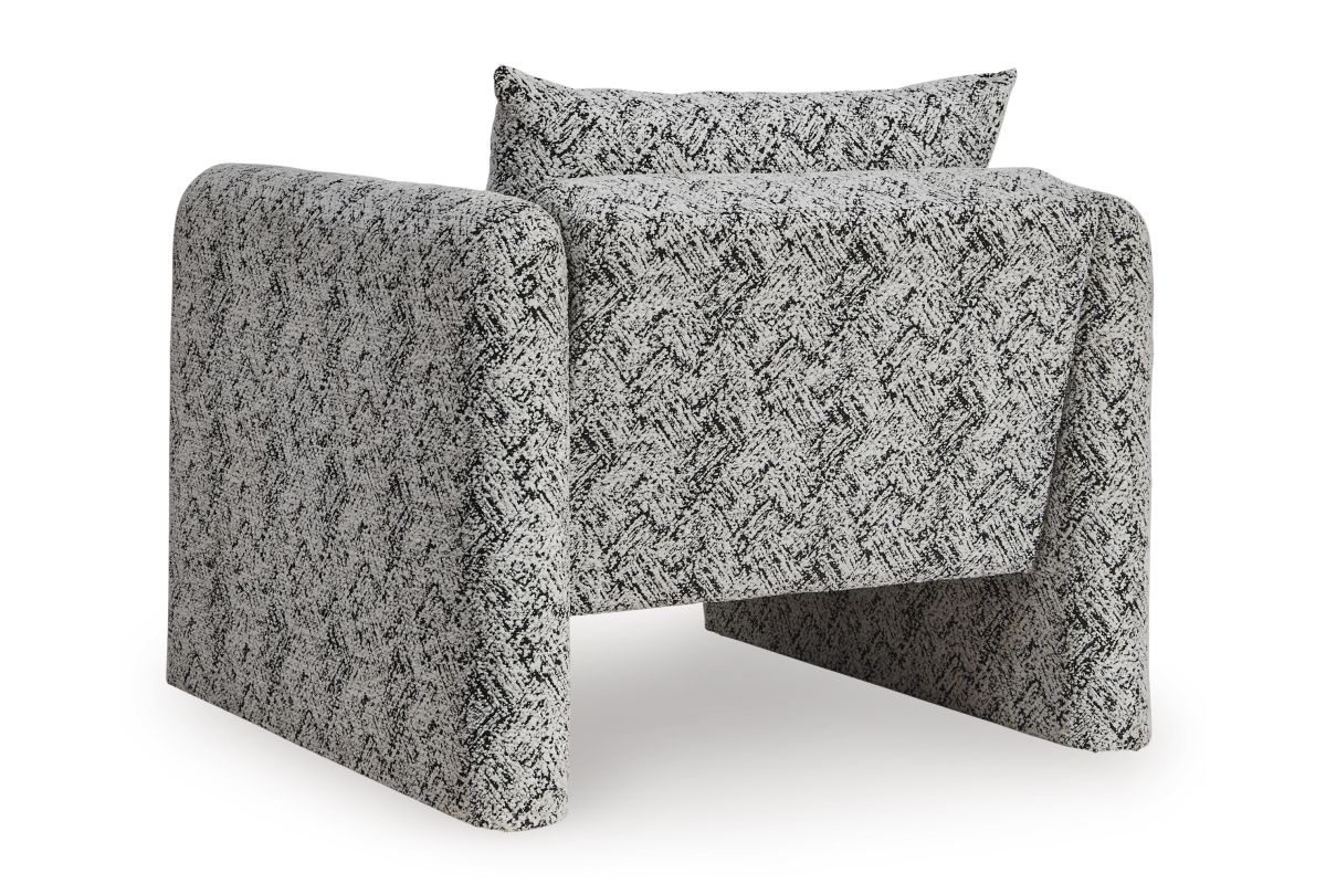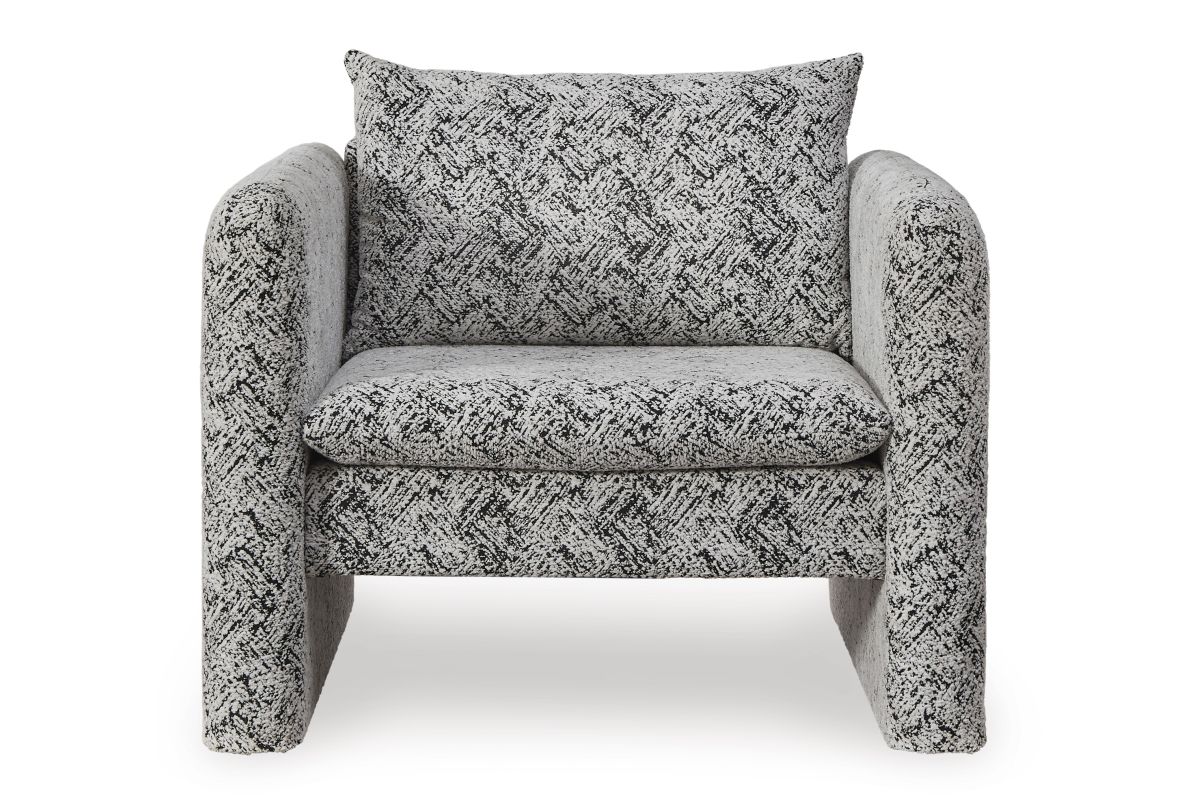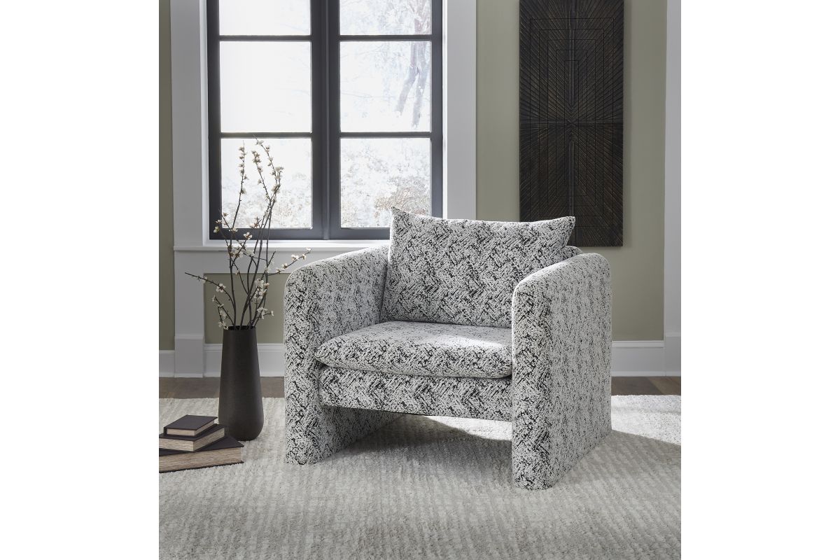 This fashion-forward accent chair keeps comfort and contemporary style at top of mind. Its eye-catching black and white geometric pattern makes a bold statement while remaining versatile enough to pair with other neutrals or pops of color. A low-profile back and streamlined silhouette lend a sophisticated, trend-right vibe to your space.