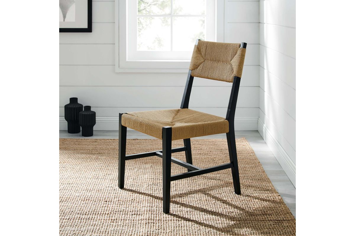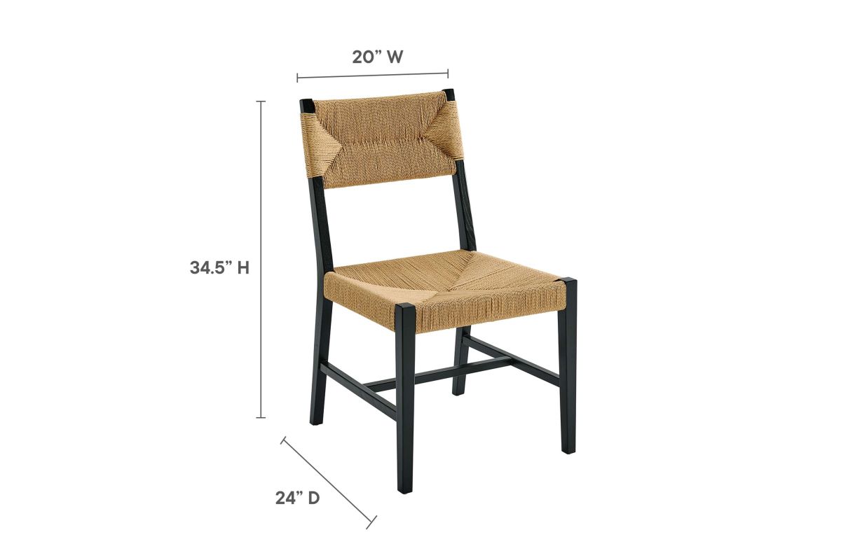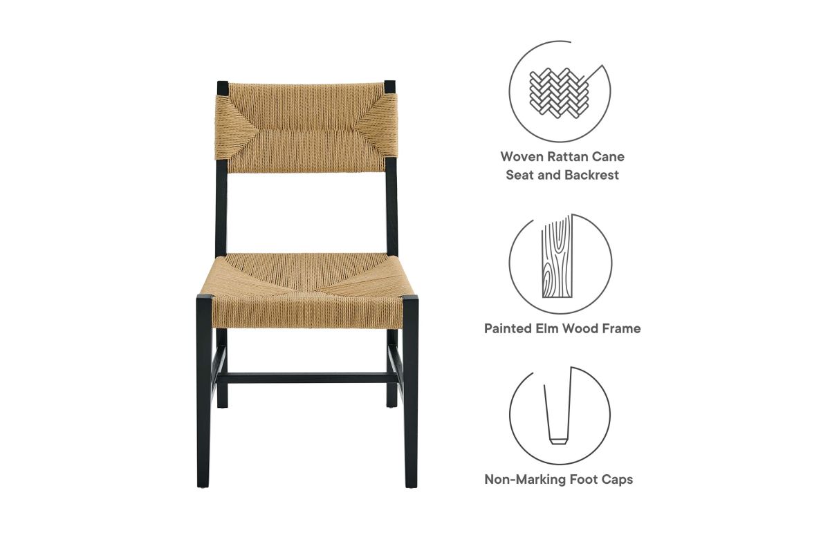 Introduce calm coastal style and modern farmhouse charm to your dining space with the Bodie Dining Side Chair. Featuring a woven paper rope backrest and seat, this dining chair brings alluring texture to a dining table or to the living room as an accent chair. This side chair is crafted with a durable elm wood frame with stretchers connecting the legs for added interest. Includes plastic foot glides to protect flooring. Weight Capacity: 330 lbs.