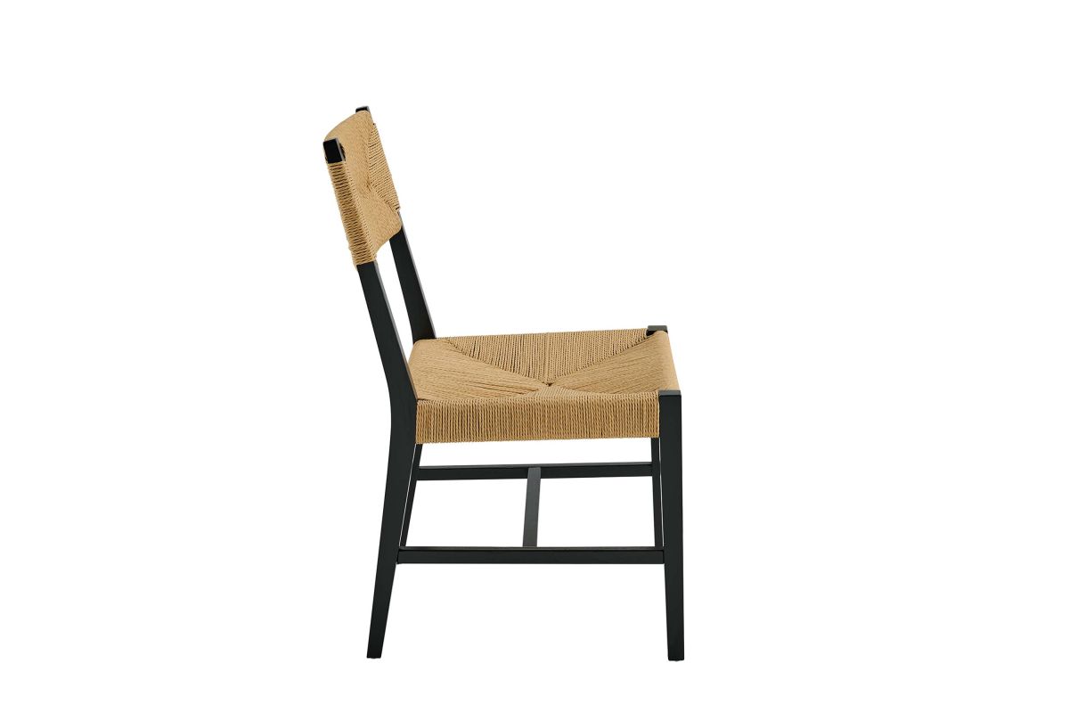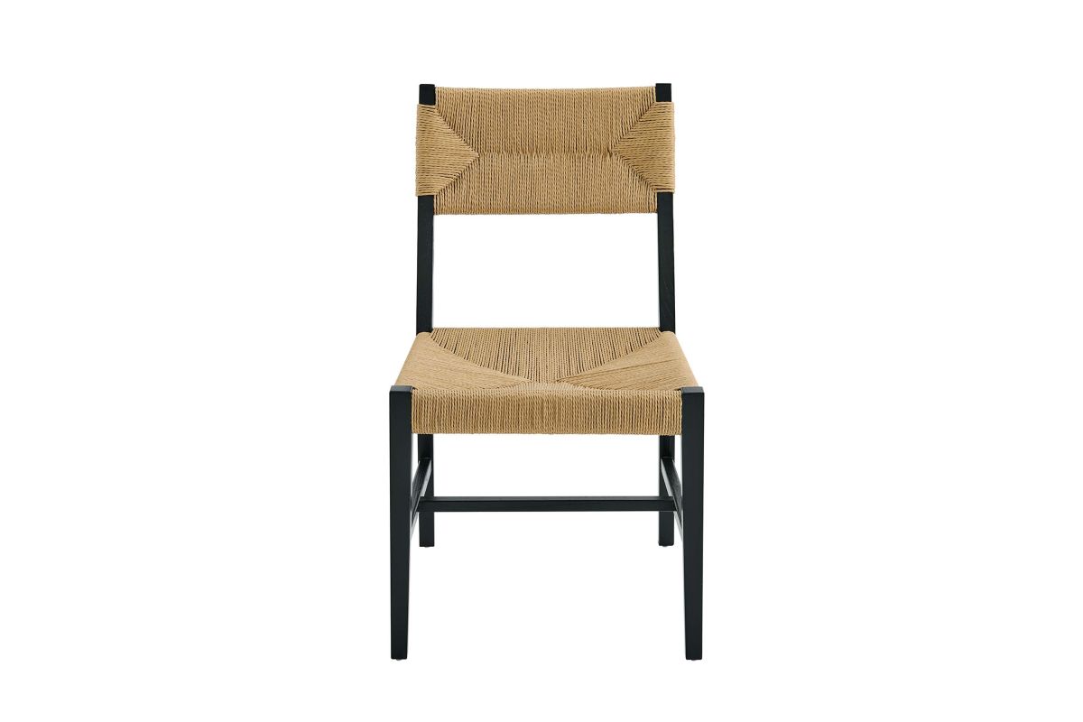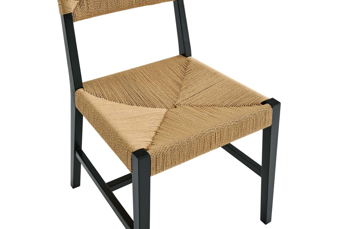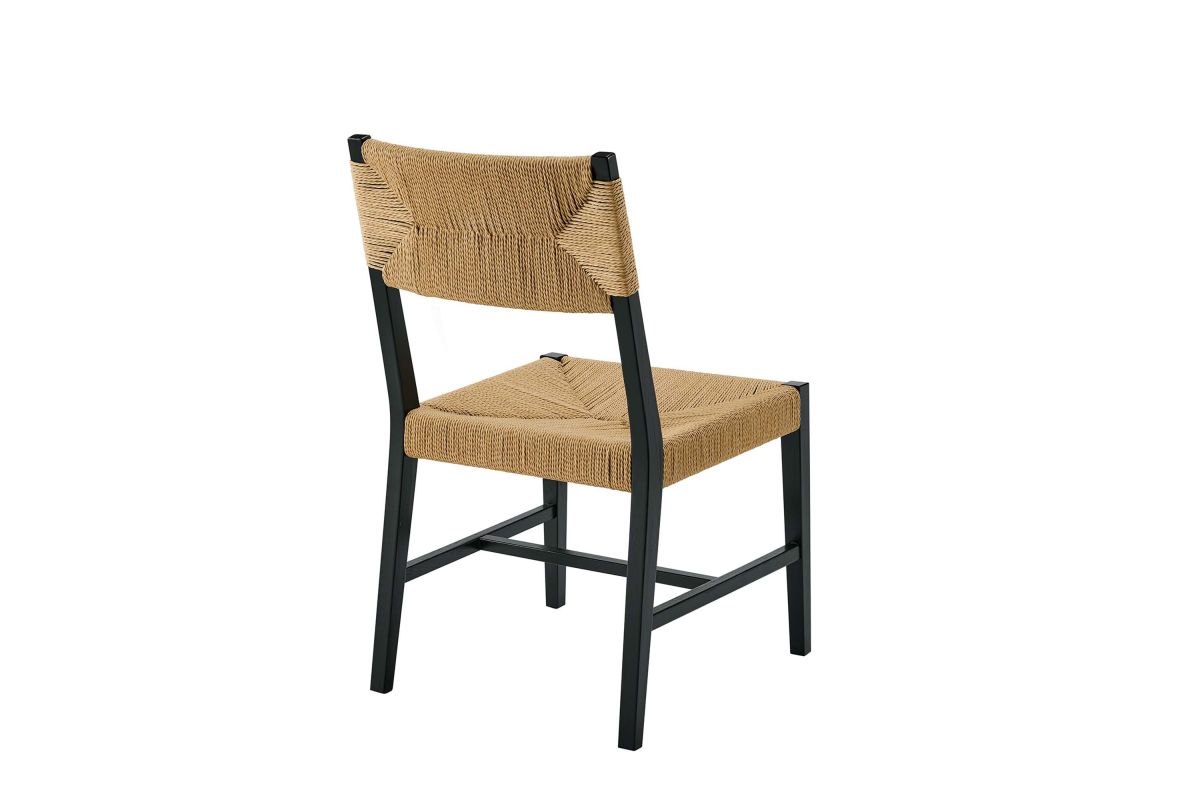 Introduce calm coastal style and modern farmhouse charm to your dining space with the Bodie Dining Side Chair. Featuring a woven paper rope backrest and seat, this dining chair brings alluring texture to a dining table or to the living room as an accent chair. This side chair is crafted with a durable elm wood frame with stretchers connecting the legs for added interest. Includes plastic foot glides to protect flooring. Weight Capacity: 330 lbs.