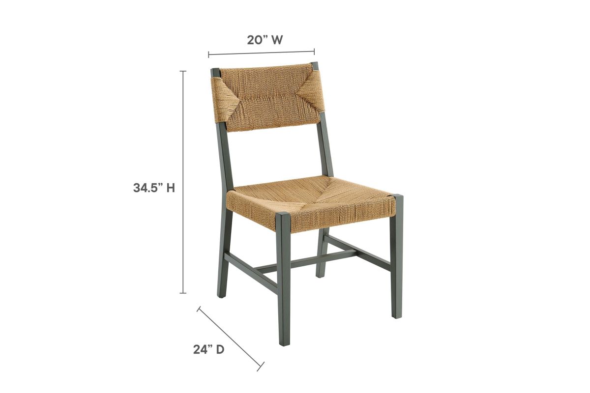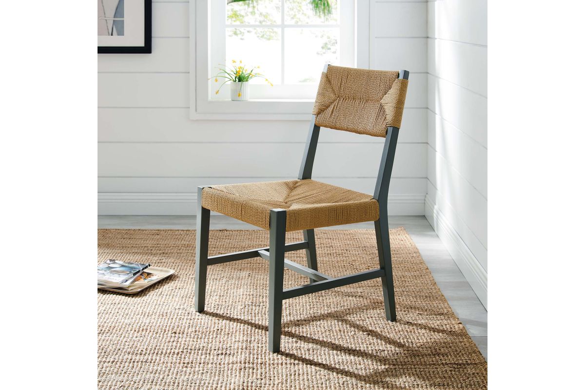 Introduce calm coastal style and modern farmhouse charm to your dining space with the Bodie Dining Side Chair. Featuring a woven paper rope backrest and seat, this dining chair brings alluring texture to a dining table or to the living room as an accent chair. This side chair is crafted with a durable elm wood frame with stretchers connecting the legs for added interest. Includes plastic foot glides to protect flooring. Weight Capacity: 330 lbs.