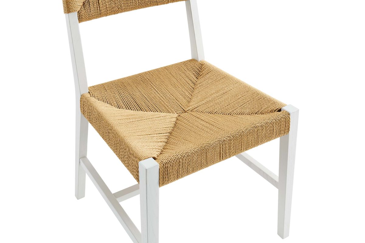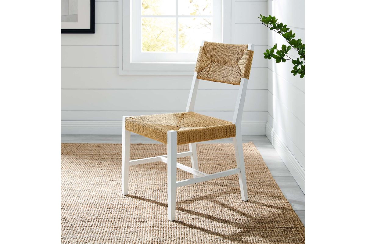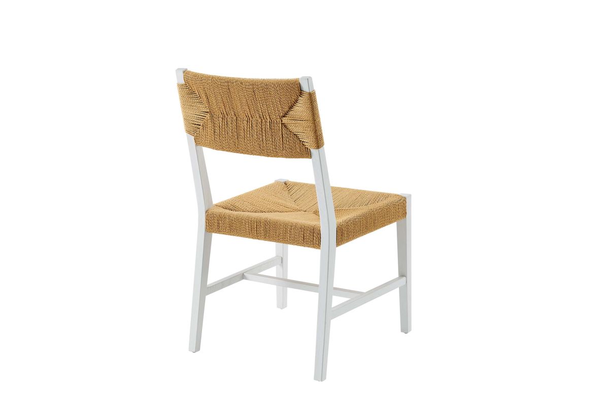 Introduce calm coastal style and modern farmhouse charm to your dining space with the Bodie Dining Side Chair. Featuring a woven paper rope backrest and seat, this dining chair brings alluring texture to a dining table or to the living room as an accent chair. This side chair is crafted with a durable elm wood frame with stretchers connecting the legs for added interest. Includes plastic foot glides to protect flooring. Weight Capacity: 330 lbs.