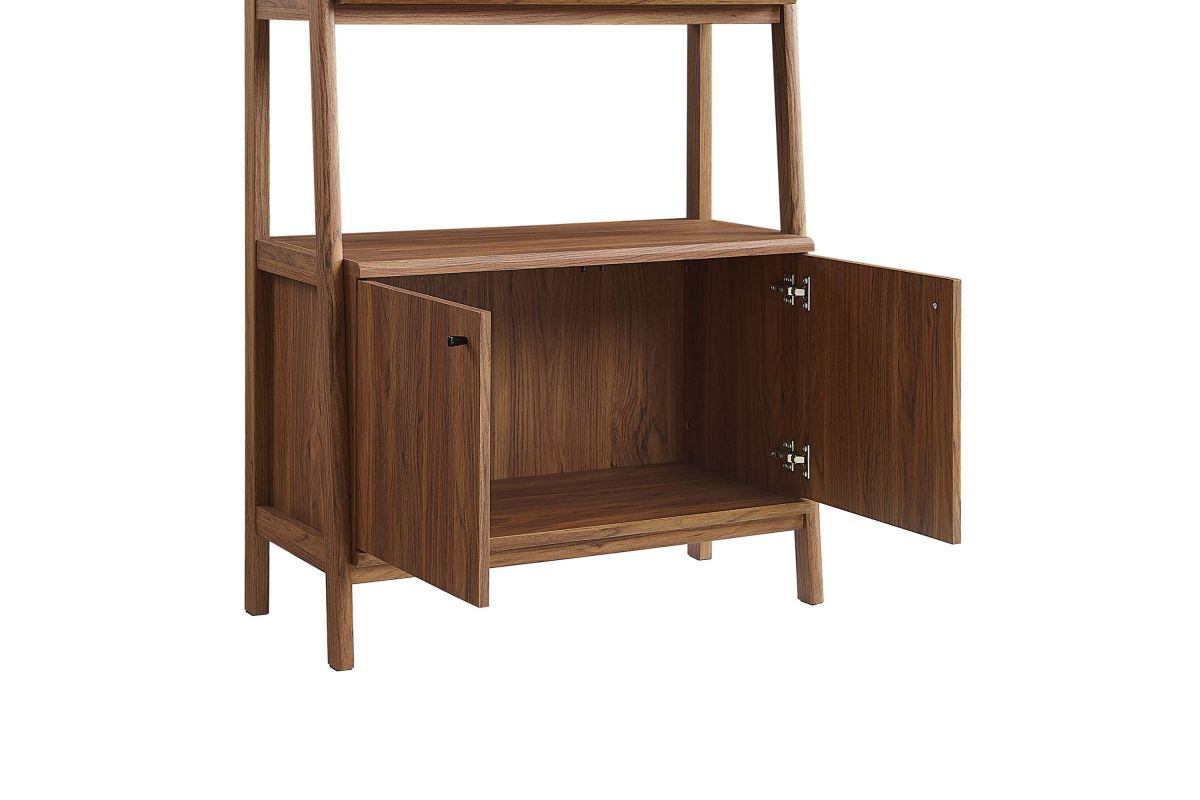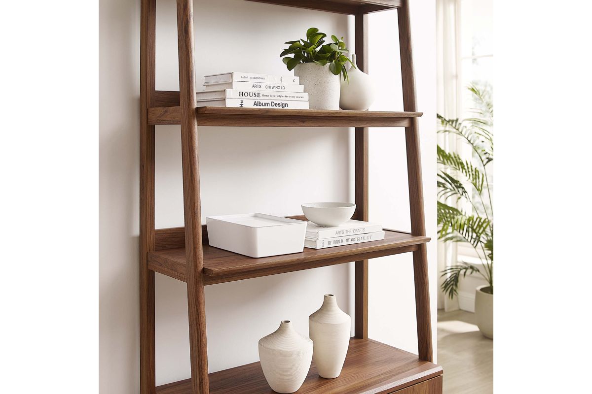 Stack your favorite reads and display home accessories with the Bixby 21" Bookshelf. Featuring a slim, tiered silhouette, this bookcase blends organic wood grain with the sleek lines of the shelves to create beautiful contrast. With plenty of room for storage and display, this bookshelf is complete with three spacious shelves and a concealed storage area on the bottom to keep living room or home office essentials out of sight. This display stand is crafted with particleboard and MDF for a sturdy construction that's built to last.