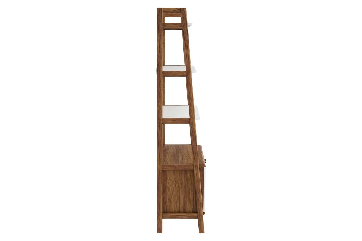Stack your favorite reads and display home accessories with the Bixby 21" Bookshelf. Featuring a slim, tiered silhouette, this bookcase blends organic wood grain with the sleek lines of the shelves to create beautiful contrast. With plenty of room for storage and display, this bookshelf is complete with three spacious shelves and a concealed storage area on the bottom to keep living room or home office essentials out of sight. This display stand is crafted with particleboard and MDF for a sturdy construction that's built to last.