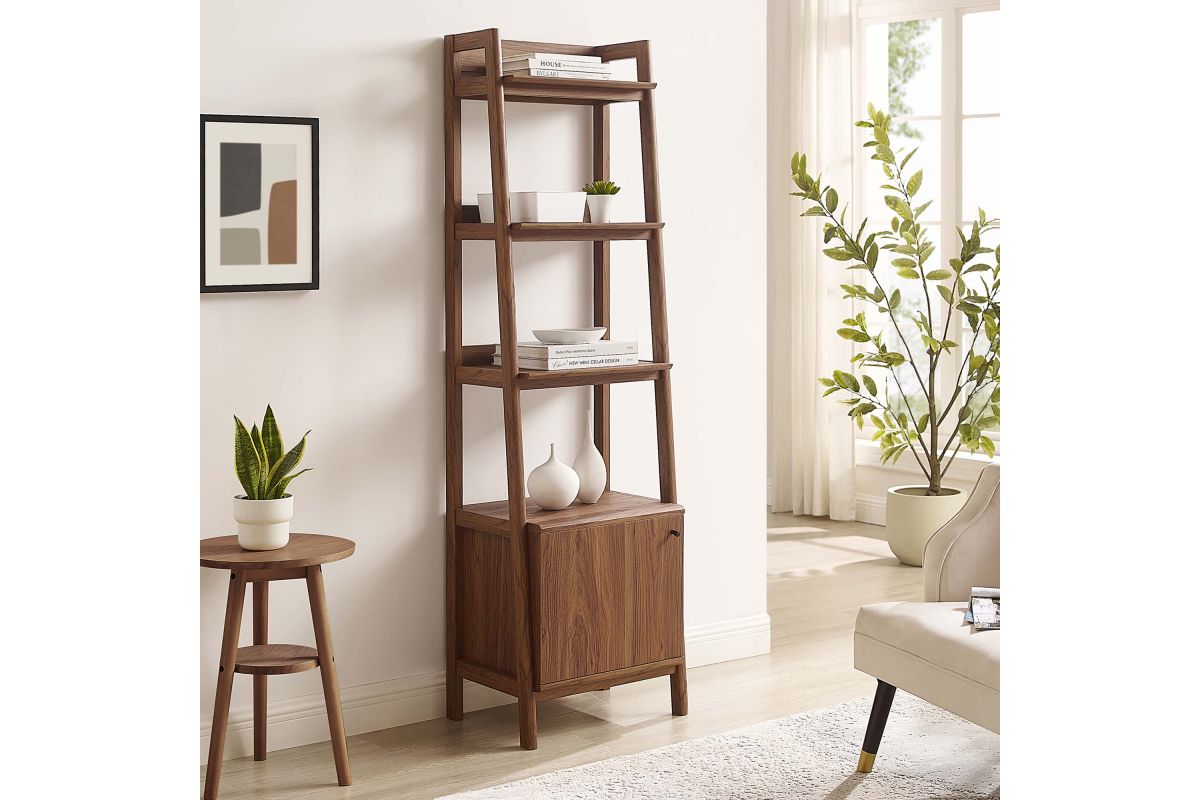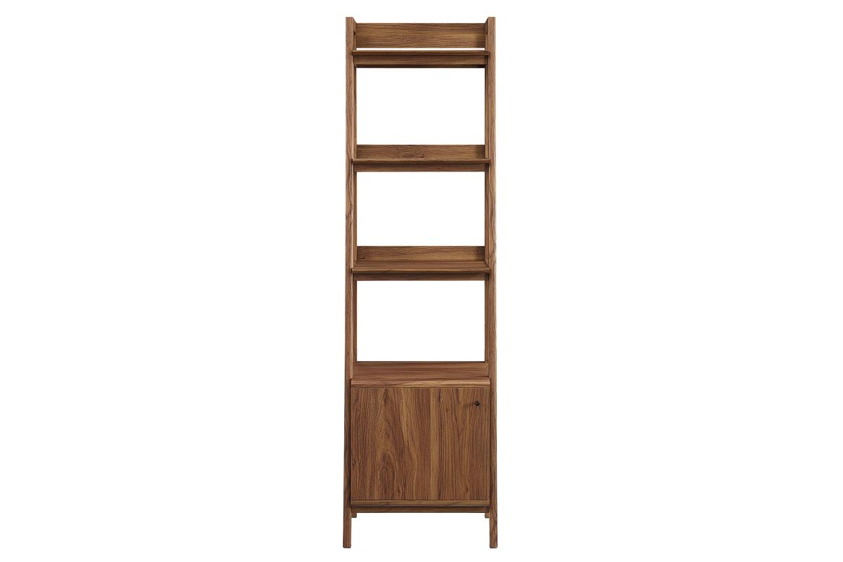 Stack your favorite reads and display home accessories with the Bixby 21" Bookshelf. Featuring a slim, tiered silhouette, this bookcase blends organic wood grain with the sleek lines of the shelves to create beautiful contrast. With plenty of room for storage and display, this bookshelf is complete with three spacious shelves and a concealed storage area on the bottom to keep living room or home office essentials out of sight. This display stand is crafted with particleboard and MDF for a sturdy construction that's built to last. Assembly required.