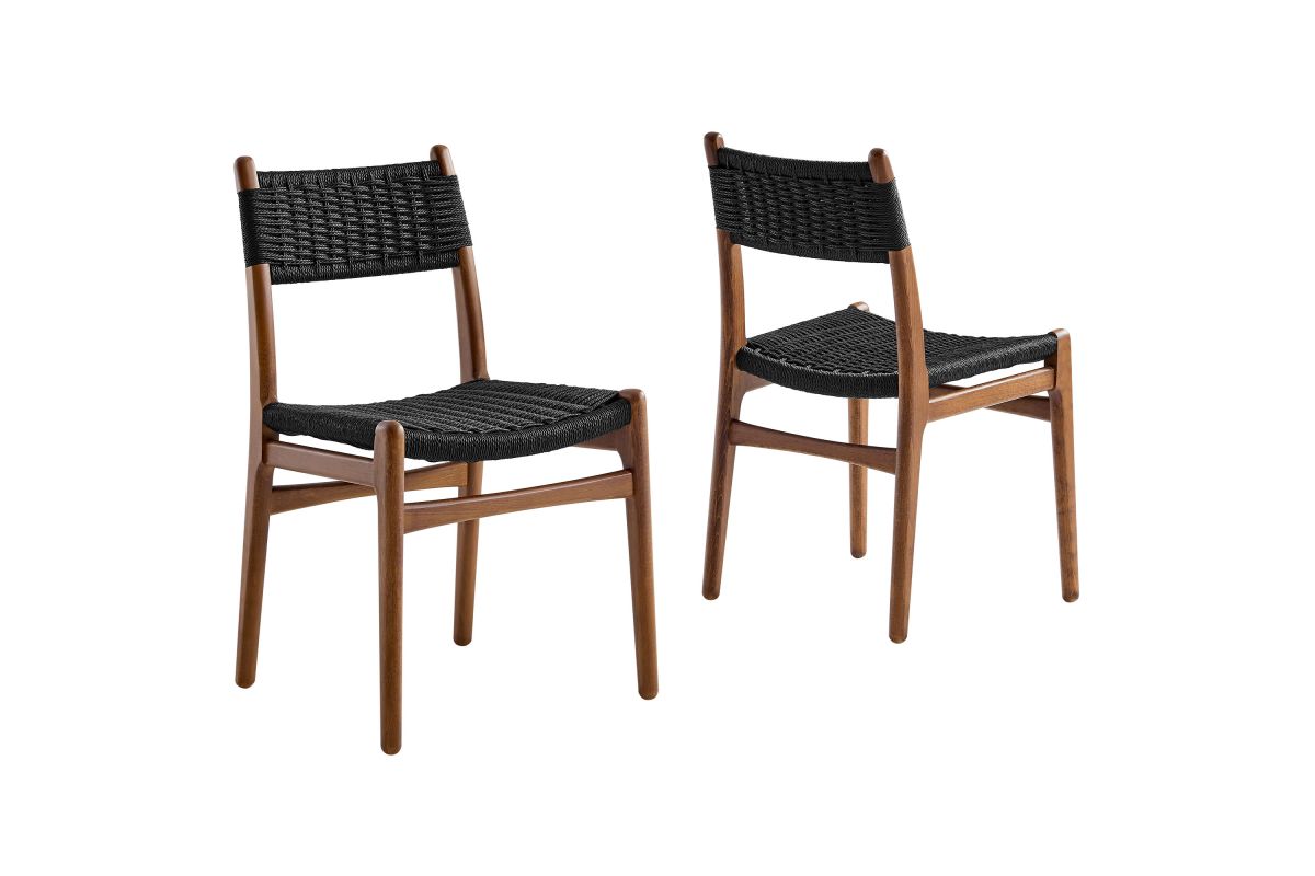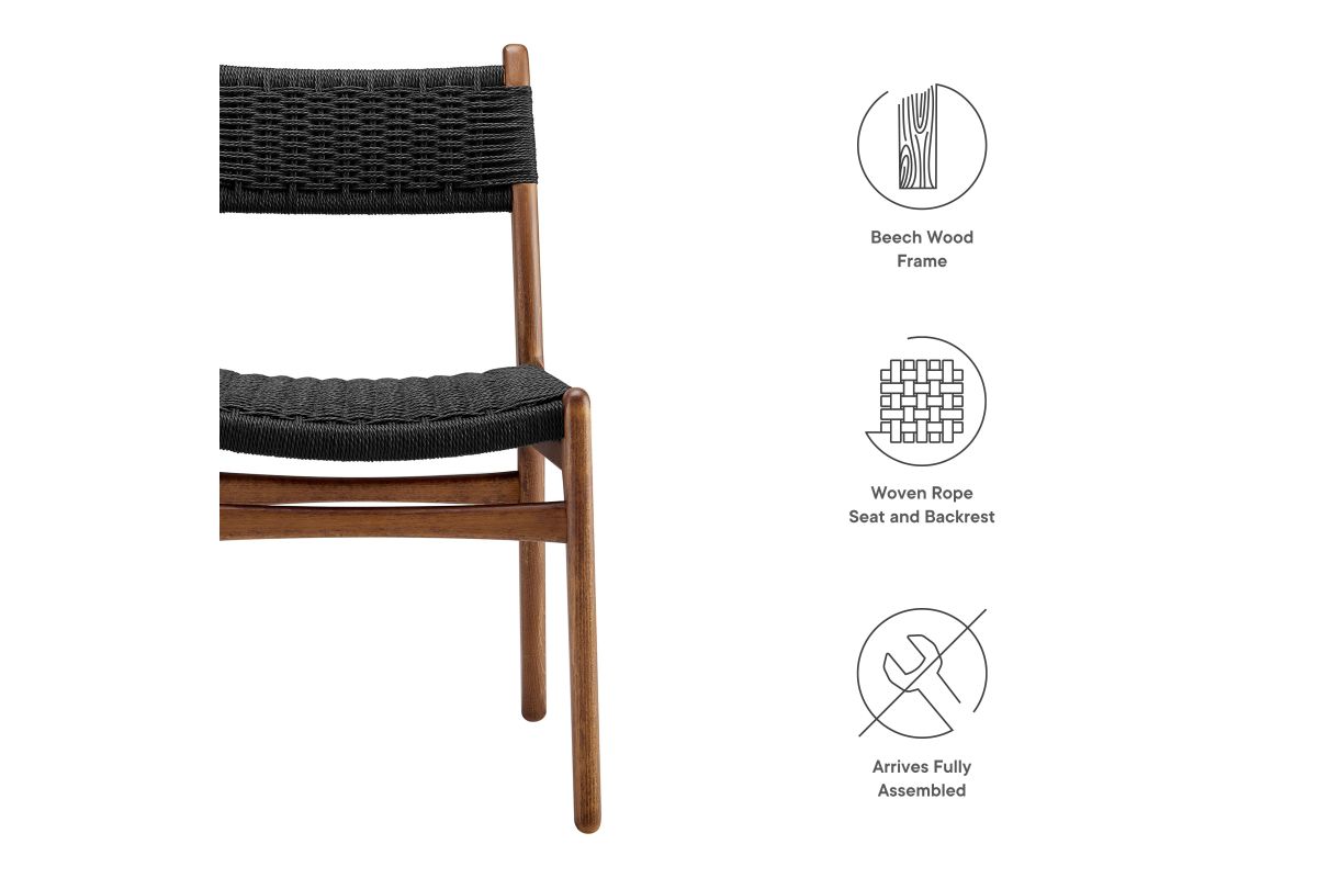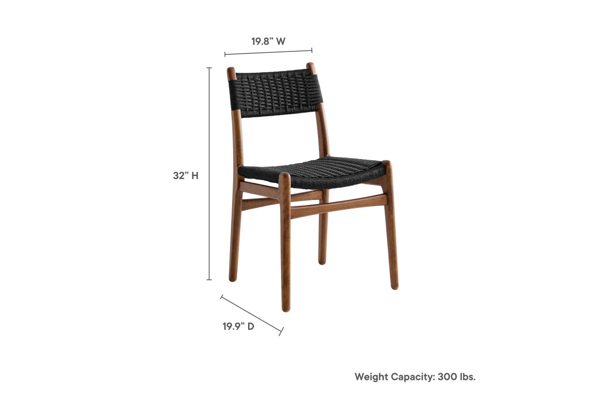 Transform your dining area with the distinctive style of the Wynn Dining Side Chairs, where natural textures meet a sleek, modern silhouette. This set of 2 dining chairs doesn't just sit pretty�these chairs add a breezy charm to your home with their open, airy design and cool, woven rope backrest and seat. Crafted with a sturdy beech wood frame, these woven dining chairs bring a unique blend of comfort and style to any dining room, kitchen, or office. The slightly curved frame and carefully placed stretchers on these modern dining chairs offer both aesthetic appeal and structural integrity. Whether you�re seeking versatile dining table chairs, stylish reception chairs for an office, or a striking set of 2 living room accent chairs, the Wynn Wood and Rope Dining Chairs deliver. Arriving fully assembled, this set of 2 chairs combines mid-century modern inspiration with contemporary elegance, fitting seamlessly into a range of decors. Embrace the blend of natural materials and modern design, and let your space tell a story of style and sophistication. Weight Capacity Per Side Chair: 330 lbs.