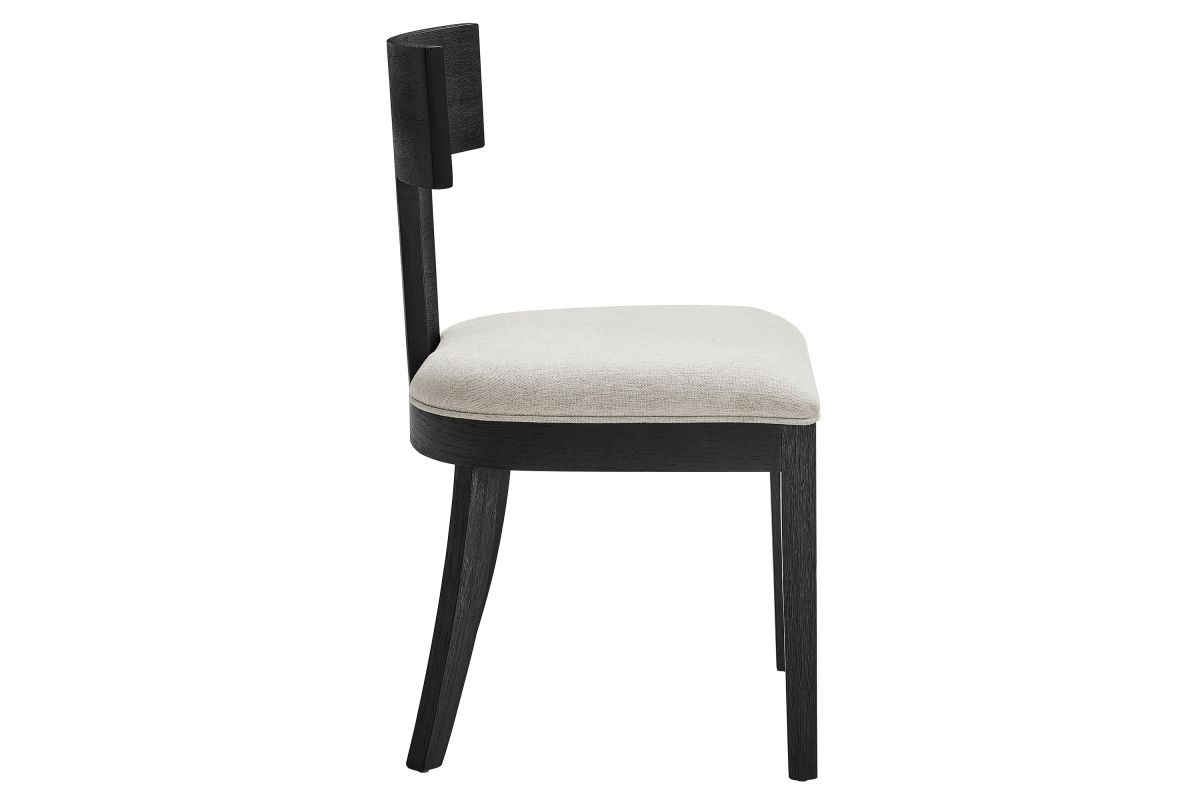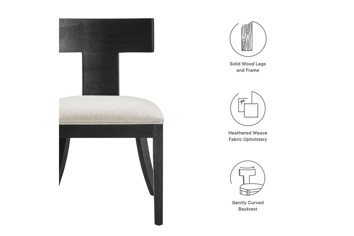Enhance your living or dining space with the Peregrine Dining Side Chairs, a set of 2 accent chairs beautifully crafted from solid wood with a stunning natural wood grain finish. The unique curved backrest and back saber legs offer a blend of mid-century and modern farmhouse style. Featuring dense foam padding on the seat and heathered weave fabric upholstery, these armless chairs promise comfort and elegance. Ideal for dining rooms, kitchens, or as side chairs in the living room, this set of 2 wood upholstered chairs includes non-marking foot pins and requires assembly. Blending style and practicality, The Peregrine Dining Chairs with Curved Backs are versatile choices for kitchen table chairs or any contemporary dining area. Weight Capacity: 330 lbs.
