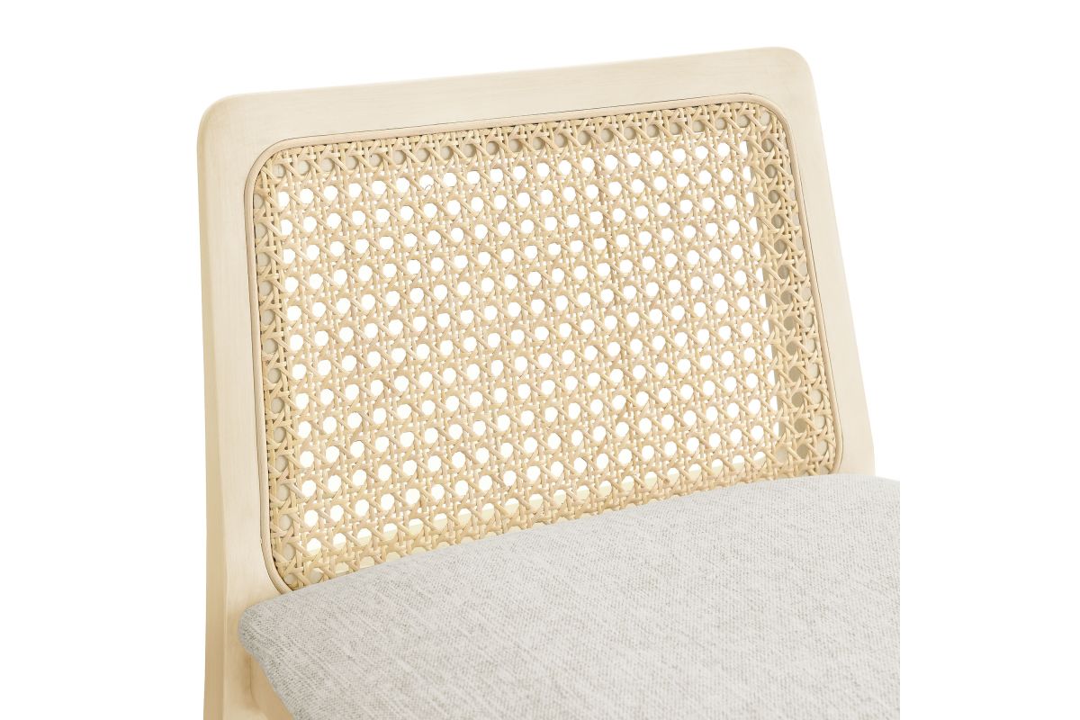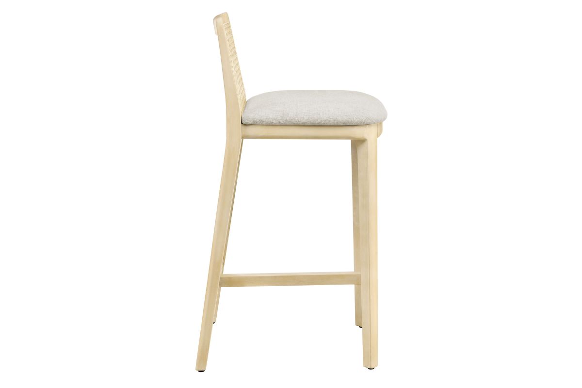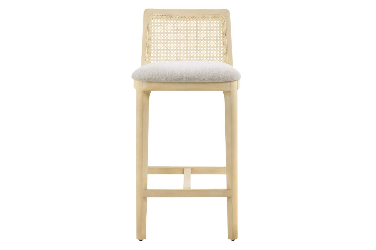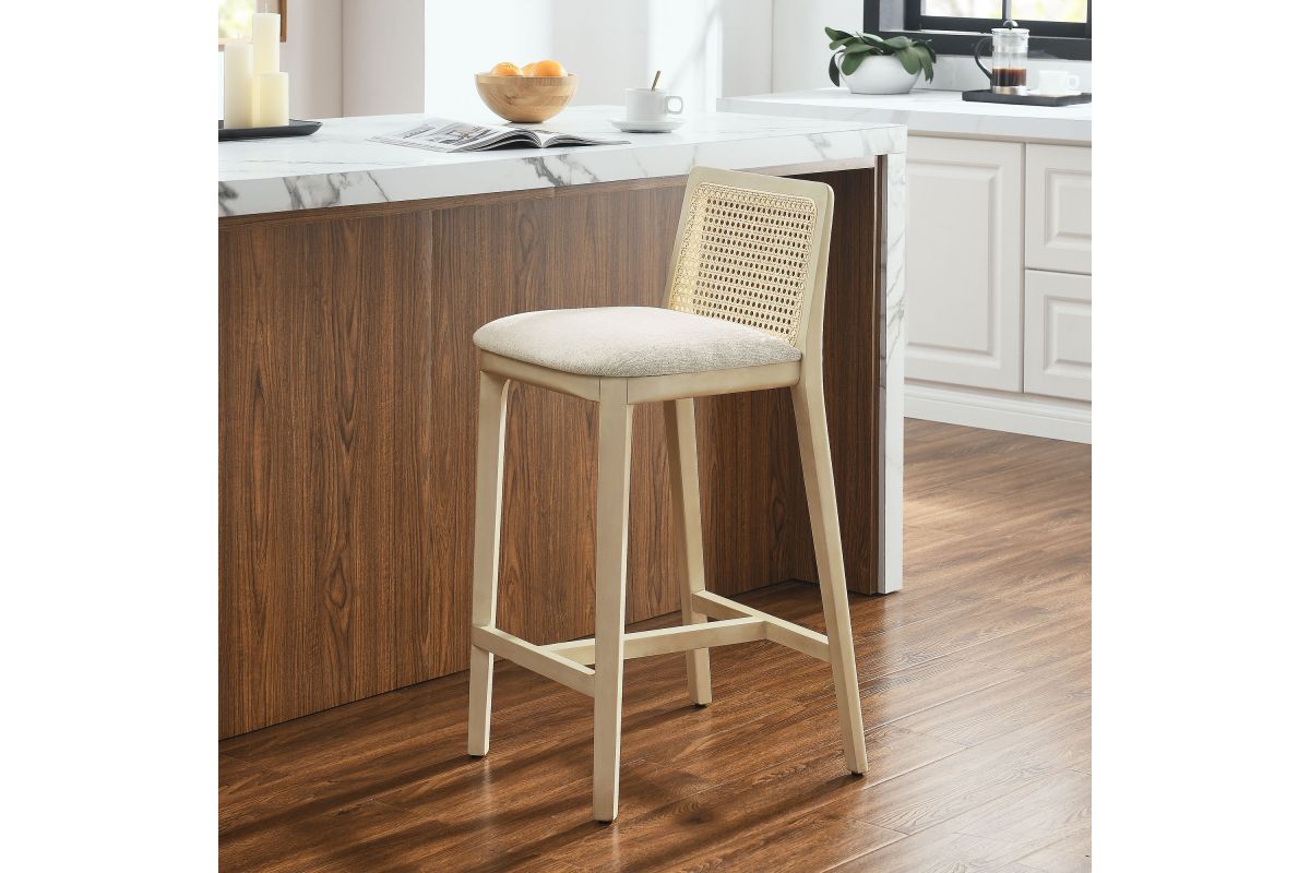 Elevate your kitchen or dining area with the Monarch Counter Stool, a stunning blend of French country elegance and modern farmhouse style. This wood counter stool features a sturdy beech wood frame and a rattan backrest with intricate cane webbing, granting both style and durability. The dense foam padded seat, covered in soft fabric upholstery, provides lasting comfort, making it a comfortable counter height chair perfect for longer gatherings. Designed as a modern stool for kitchen counters, Monarch offers versatile placement around a kitchen island or counter height table. Whether used as a single cane back counter stool or as a kitchen accent stool, it enhances your dining experience with its refined aesthetic and protects floors with its non-marking floor glides. This counter-height chair fits seamlessly into any d�cor, making it perfect for both formal gatherings and casual meals. The Monarch Counter Stool combines traditional craftsmanship with contemporary style, making it a versatile wood counter stool with a cane back for your kitchen or dining room. Weight Capacity: 330 lbs.