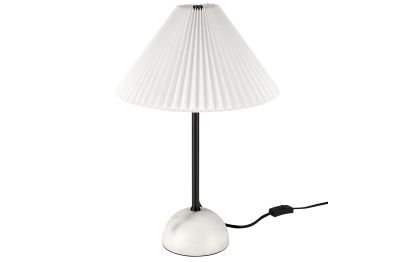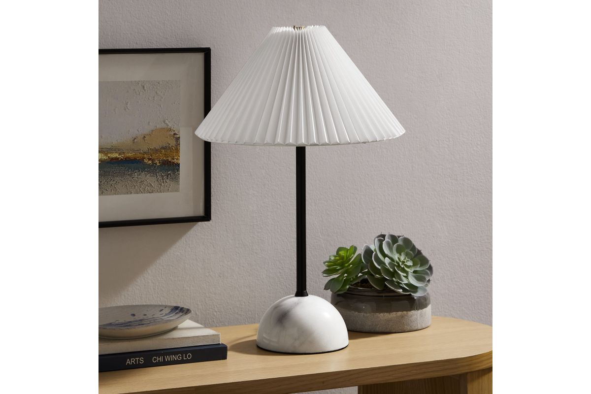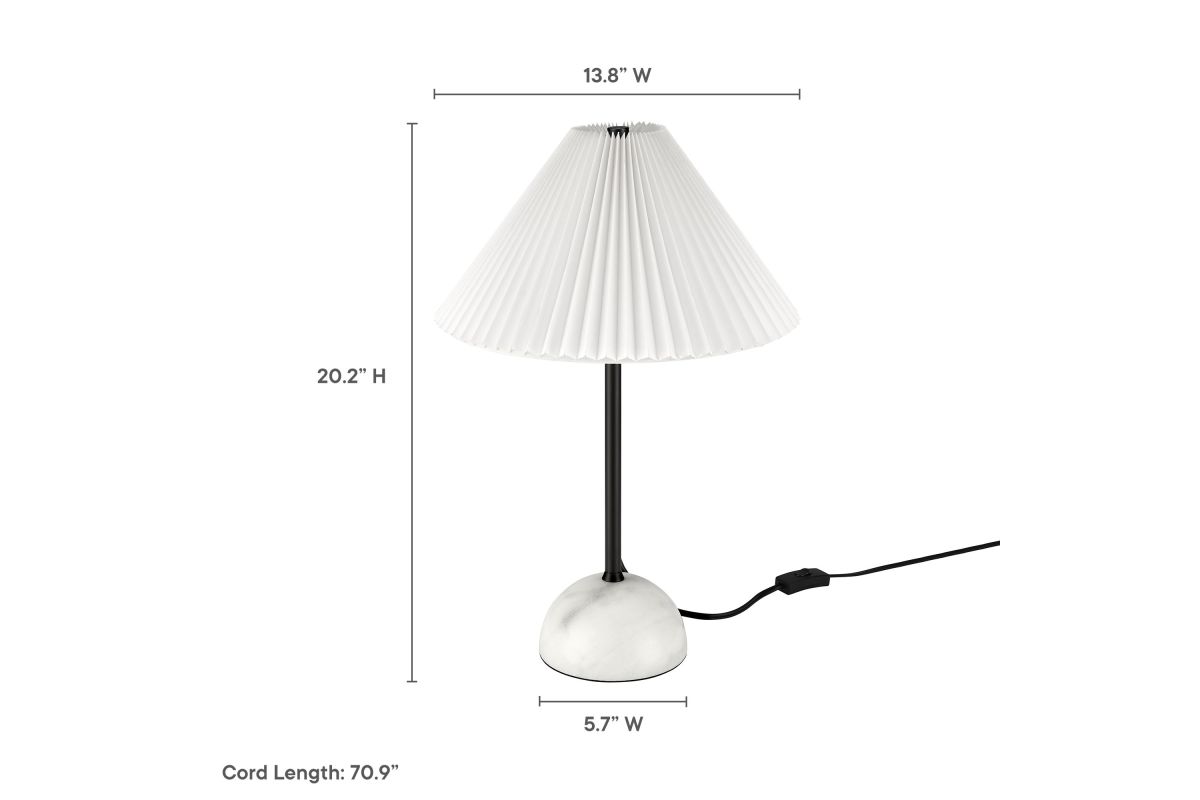 Crafted to captivate, the Illusion Table Lamp fuses the raw elegance of a luxe dome marble base with the classic charm of a pleated lamp shade. The understated glow it emits is designed to enhance your room with ambient lighting that�s both soft and inviting. Whether perched on a bedside table or as a statement piece on a side table, office desk, or entryway table, this small table lamp is designed to be a versatile accent light in any setting. The Illusion Marble Base Table Lamp is ETL listed and approved, and operates with a single E26 25W bulb (not included). Features a PVC power cord and a convenient on/off switch. Assembly required.