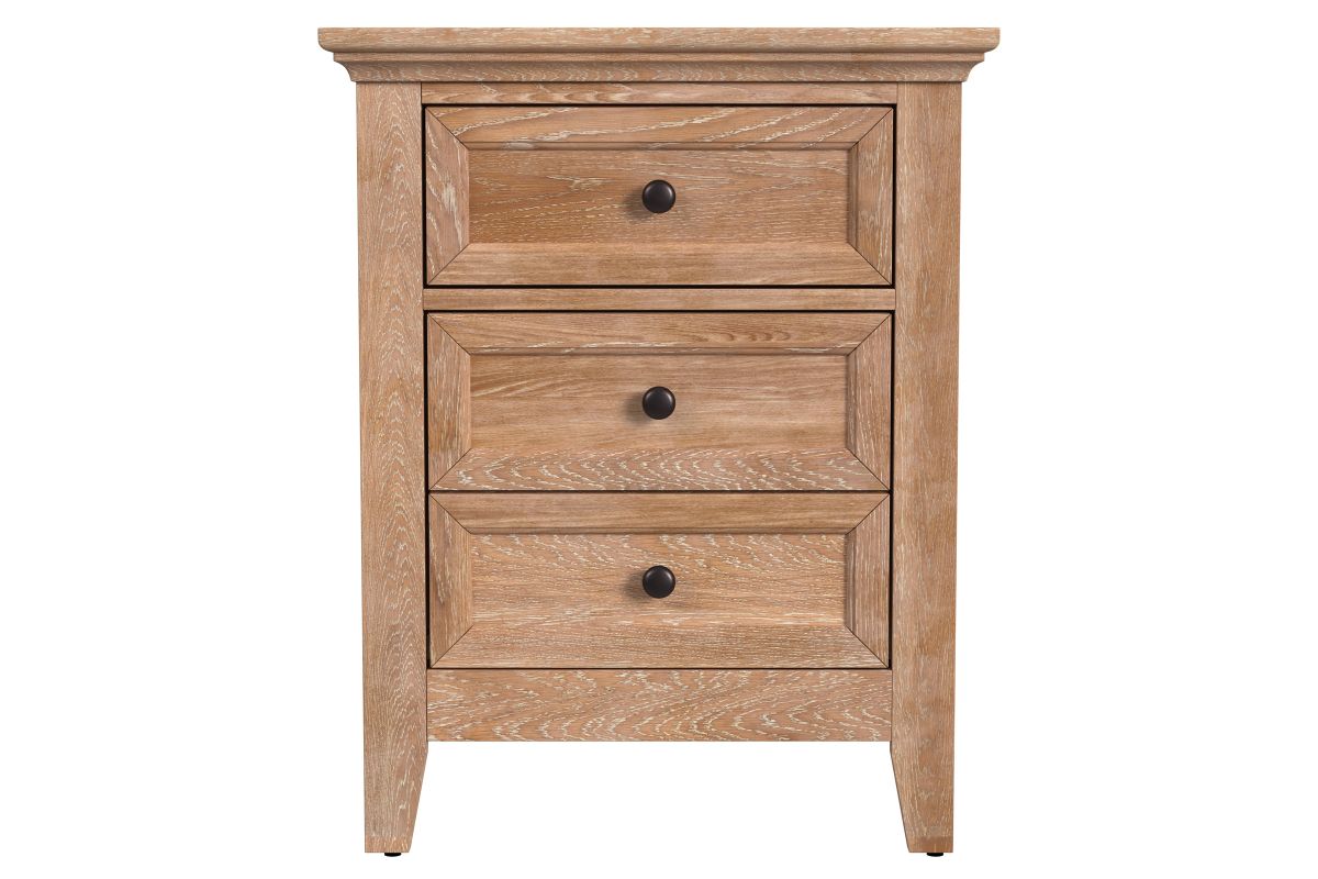 The San Mateo Nightstand is a solid wood nightstand available in a Natural classic finish, The three drawers on this piece have full extension drawer glides for easy open and close. The San Mateo Nightstand is a gorgeous piece that will last in function and style.