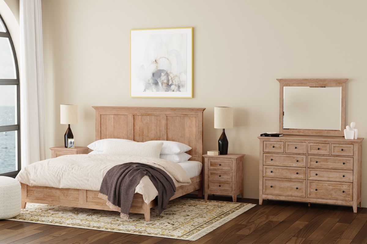 The San Mateo King Bed is a solid wood bed in a classic finish, Natural color. The San Mateo is a gorgeous bed that will last in function and style.