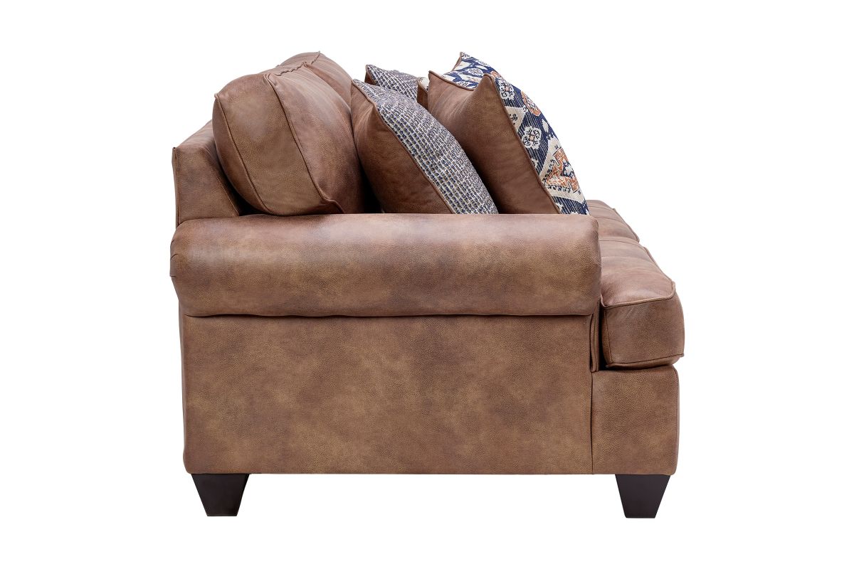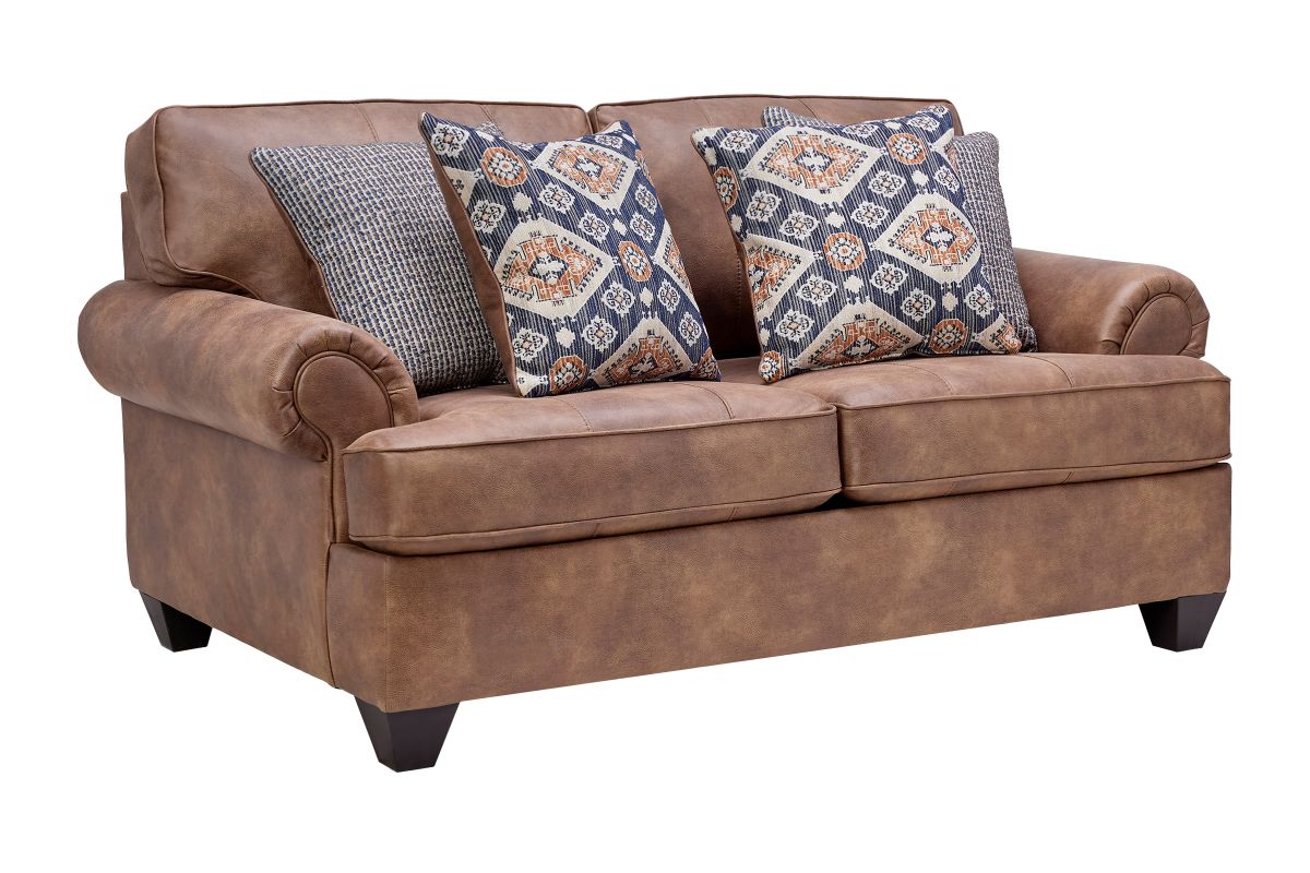The Austin Collection offers a perfect balance of comfort, style, and timeless appeal. This collection is designed to create a warm and inviting atmosphere in your home. Its casual rustic style features classic rolled arms and tapered block feet, blending traditional elegance with modern durability. Upholstered in a rich camel fabric with a soft, luxurious hand, this loveseat not only looks great but feels even better. Each piece is crafted with quality construction to ensure lasting comfort and support, making it perfect for everyday living. The generous, deep seating and plush cushions provide ample space for relaxing or entertaining, while the cohesive design brings a touch of rustic sophistication to your space. Transform your living room into a cozy retreat with the Austin collection—crafted for those who value both style and comfort.