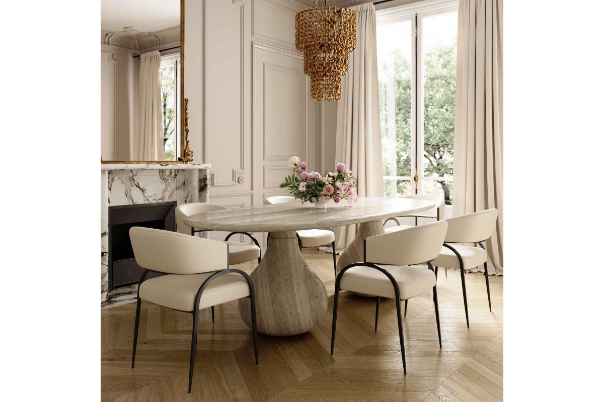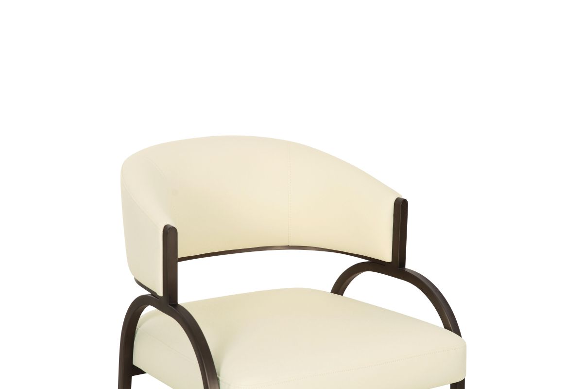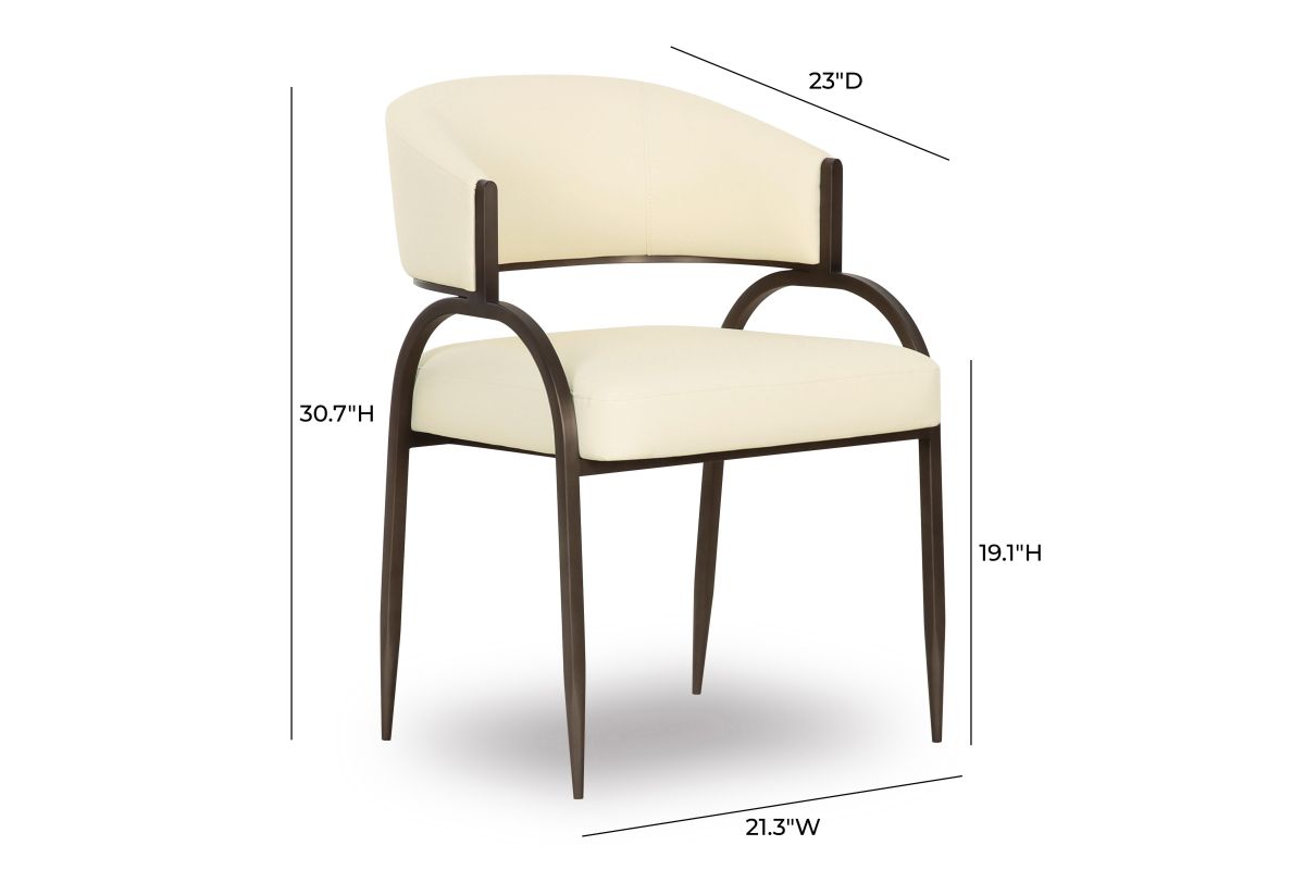 Transform your dining space with the stunning Tatum Dining Chair, offered in Cream Textured Boucle, and Cream or Tan Vegan Leather. Featuring a black iron finished metal frame, this art deco-inspired chair combines artsy flair with modern usability, offering excellent comfort and a polished look that complements any trendy dining room. The highly textured, liquid-repellent fabric and easy-to-clean vegan leather make it as practical as it is stylish.