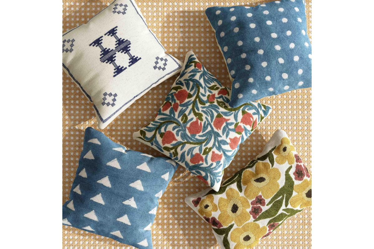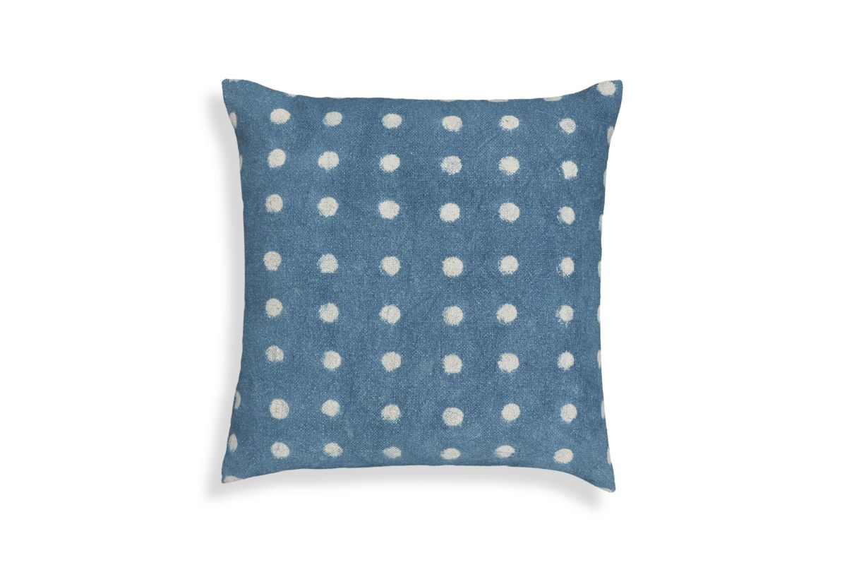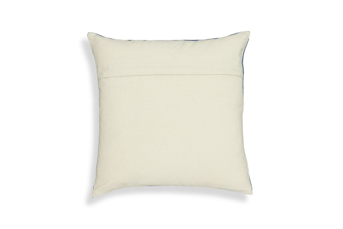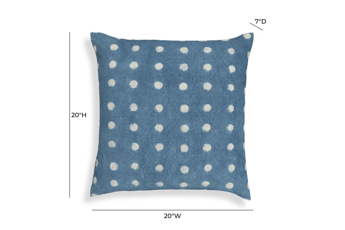 Choose from two punchy patterns, dots or triangles, with the Indigo Cotton 20" Square Accent Pillow, and infuse your space with this soulful indigo blue. Made from natural cotton fiber, this pillow features hand-stamped patterns and a heavy-weight, replaceable vegan feather-down interior filler bag for ultimate comfort and enduring style. Elevate your decor by embracing the timeless style of an indigo accent.