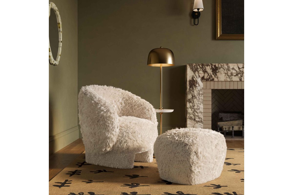 The Kiki Chair brings character to your home with her quirky-cute shape and punchy upholstery options. Featuring a curved silhouette, super soft vegan shearling upholstery, and a sturdy pine frame, this chair will cozily envelop you with its rounded back and plush seating. Want a dash of sprightly vibrance in your home? Kiki's just what you need!
