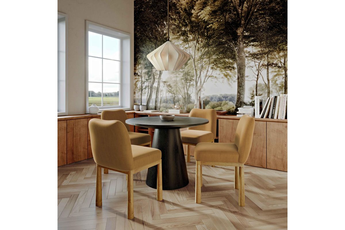 With our never-ending commitment to comfort, affordability, and en-vogue style, we introduce the Tiara Velvet Oak Dining Chair, available in Cognac or cream. Featuring luxurious short hair velvet and solid oak wooden legs with a unique reversed taper, this chair hits multiple stylish notes, perfect for evoking contemporary and mid-century design elements. Elevate your dining experience with a piece that is as comfortable as it is beautiful.