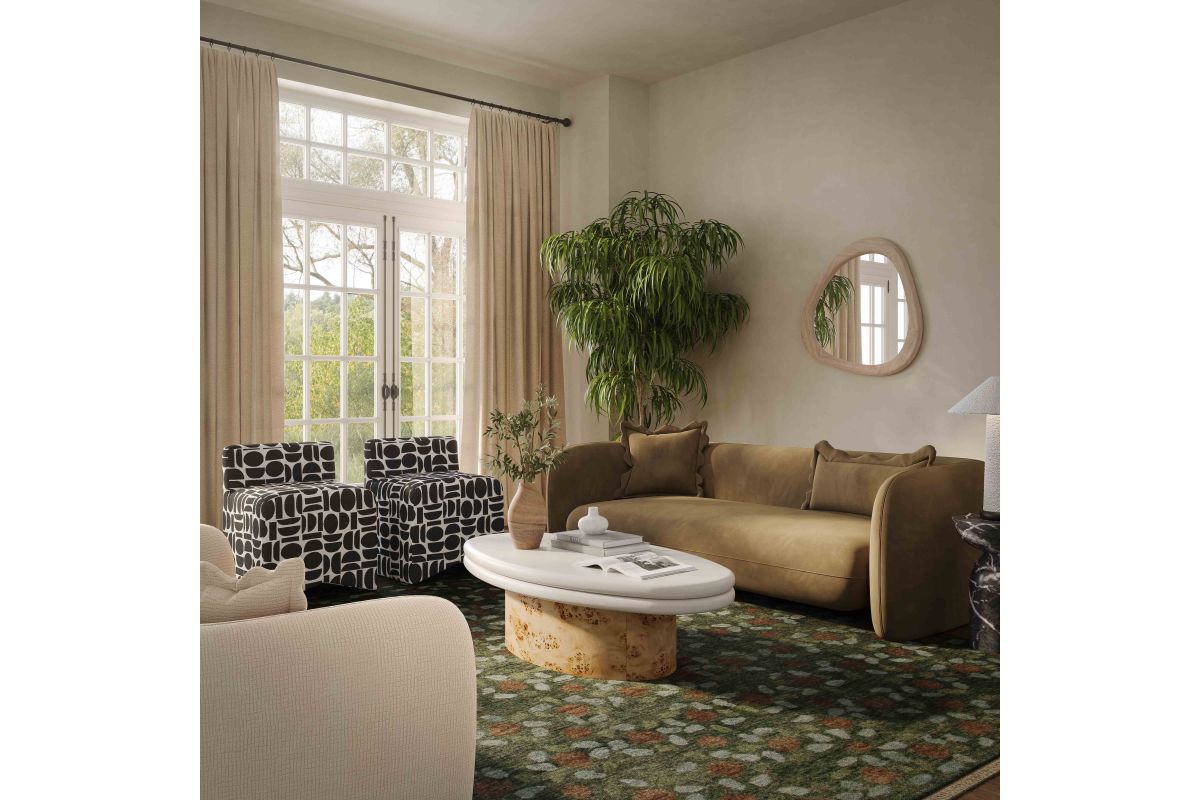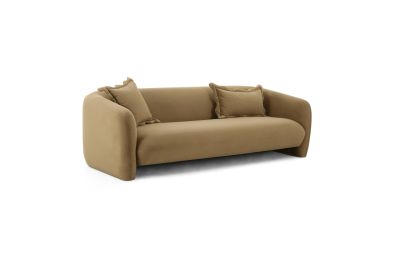The Lou Sofa/Loveseat, available in Cafe Au Lait Performance Velvet or Sandstone Textured Fabric, is as soft and cloudlike as it looks. Its playful design includes darling accent pillows with squiggly edges, adding a touch of whimsy to your living space. Lou is the perfect blend of comfort and style.
