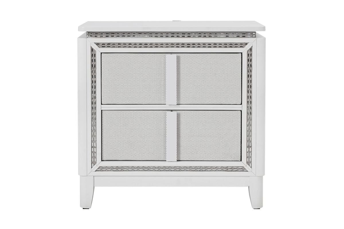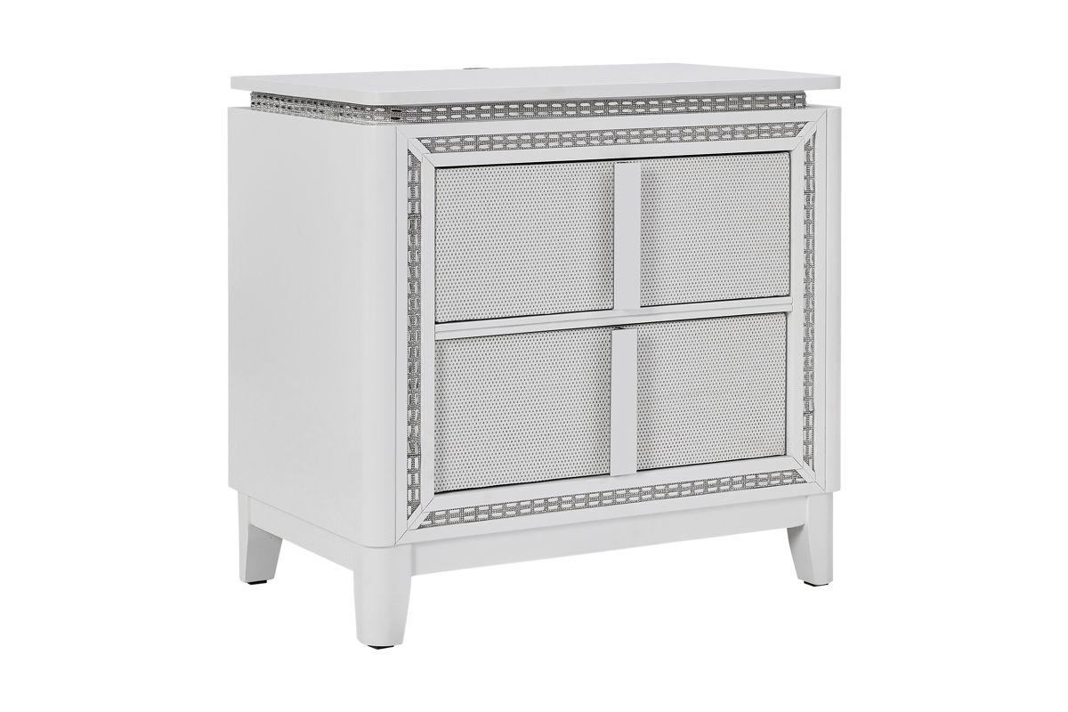 The matching Sabrina nightstand completes the set with its LED lighting and an USB Port for Charging, providing a cohesive and stylish bedroom atmosphere.