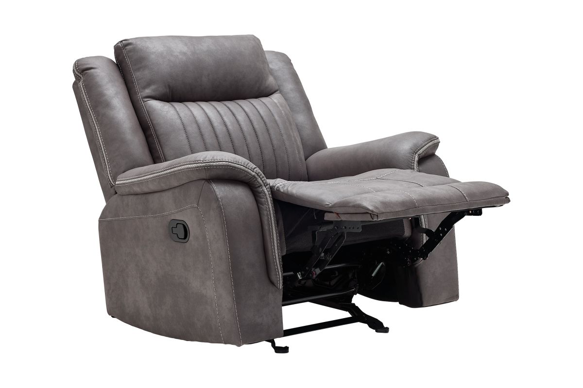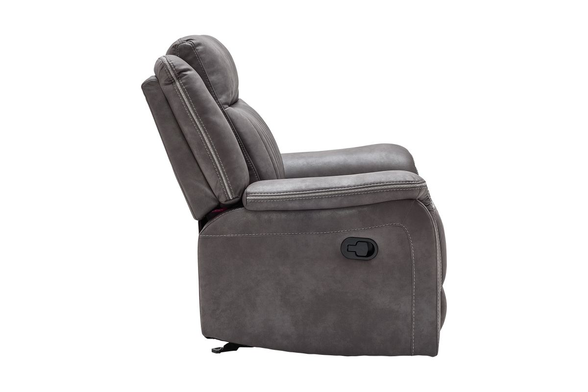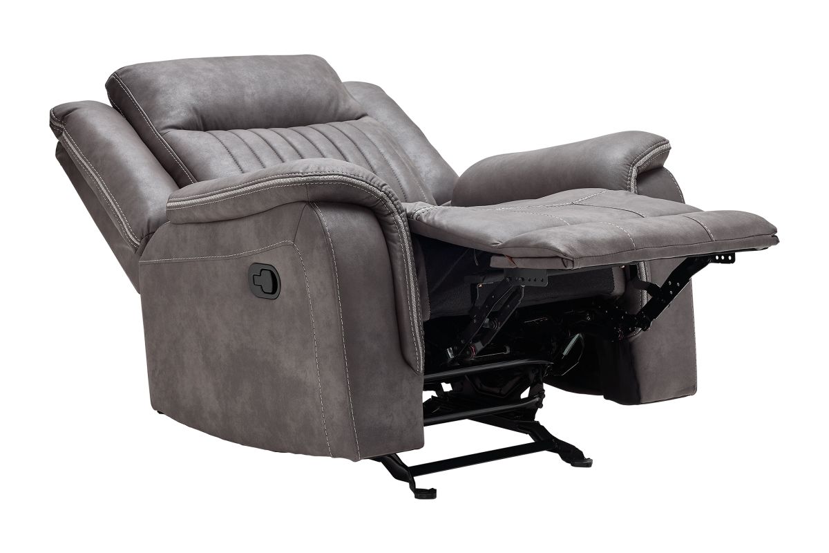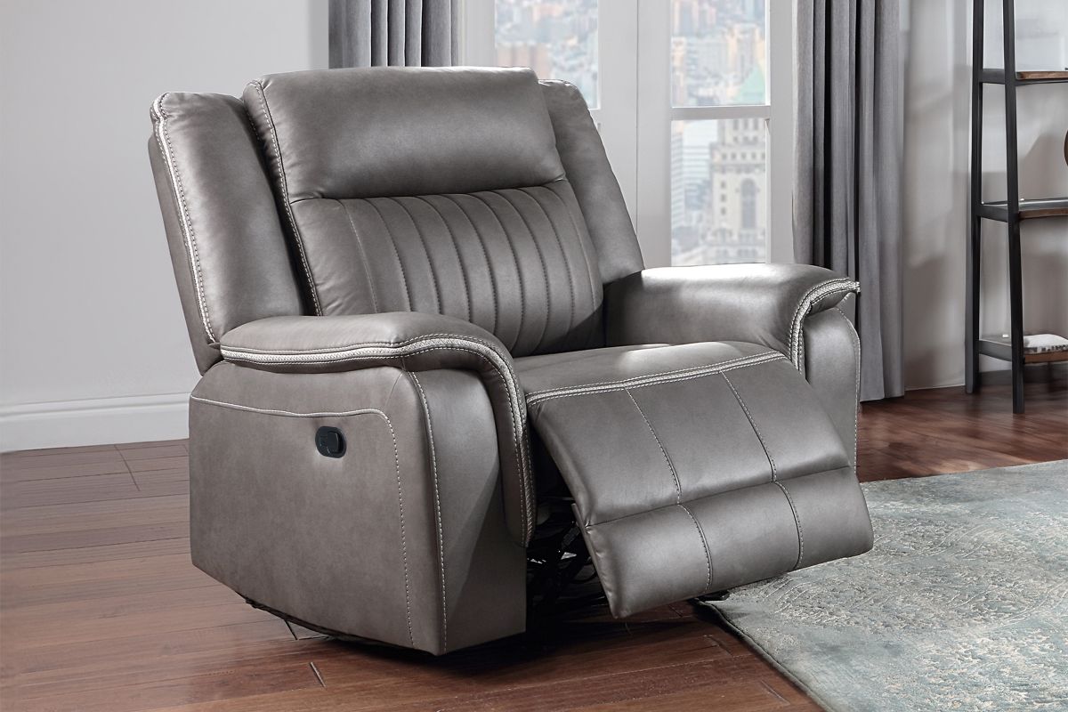 Upgrade your relaxation experience with the Tyson living room collection, designed for both style and ultimate comfort. Upholstered in sleek gray faux leather, this set includes a reclining sofa, console loveseat, and recliner, offering plush seating with a contemporary edge. Featuring effortless reclining at the pull of the lever, this set provides customized comfort with high-density cushions and supportive backrests for all-day relaxation. Whether you're hosting guests or unwinding after a long day, the Tyson reclining set brings modern luxury and everyday functionality to your home.