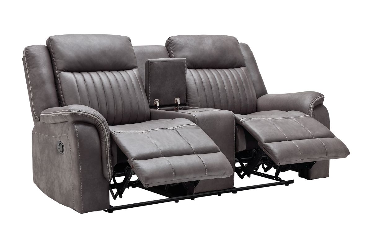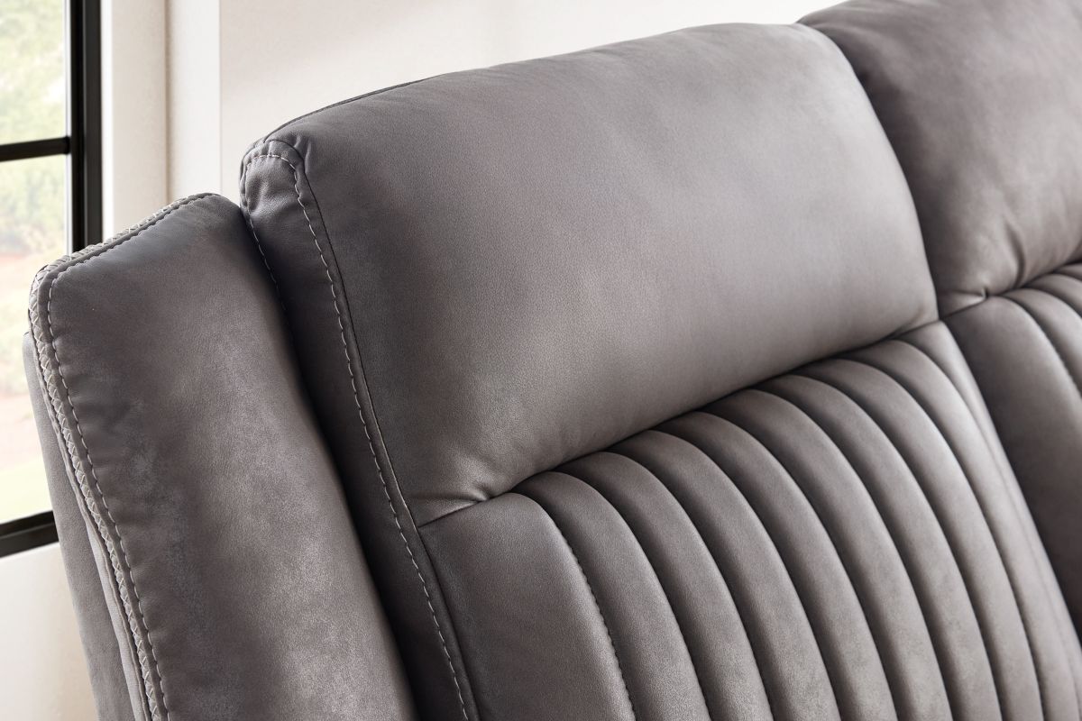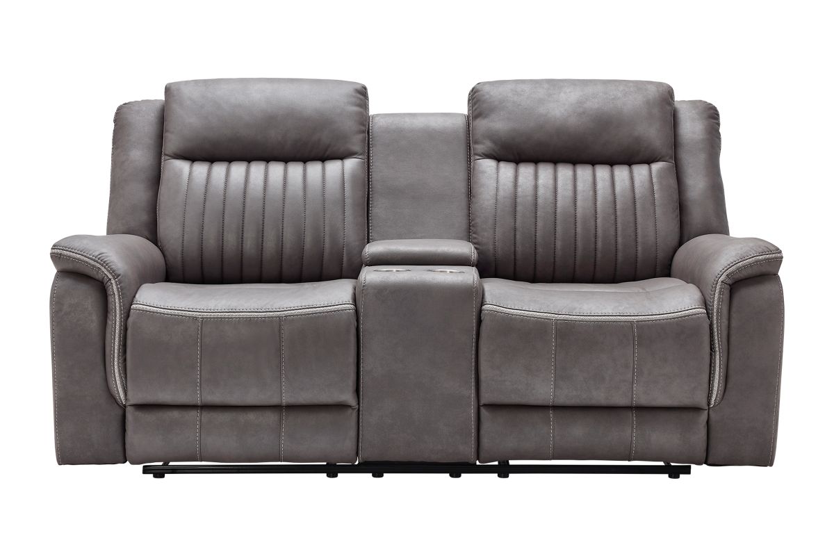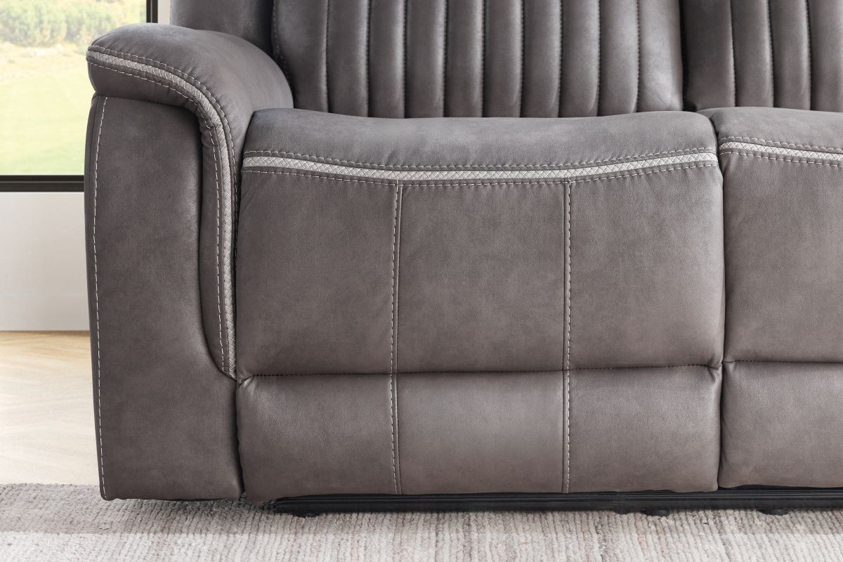Upgrade your relaxation experience with the Tyson living room collection, designed for both style and ultimate comfort. Upholstered in sleek gray faux leather, this set includes a reclining sofa, console loveseat, and recliner, offering plush seating with a contemporary edge. Featuring effortless reclining at the pull of the lever, this set provides customized comfort with high-density cushions and supportive backrests for all-day relaxation. The loveseat includes a convenient storage console with built-in cup holders, keeping essentials within reach. Whether you're hosting guests or unwinding after a long day, the Tyson reclining set brings modern luxury and everyday functionality to your home.