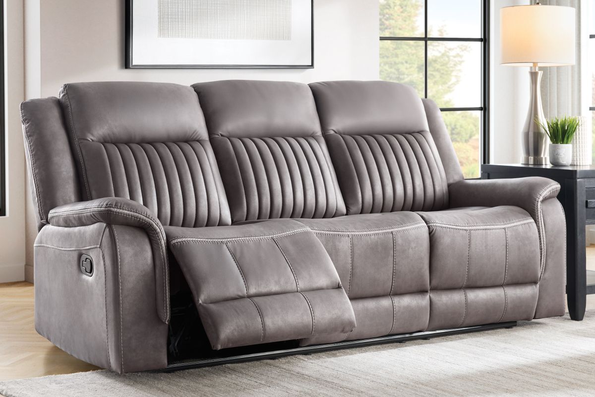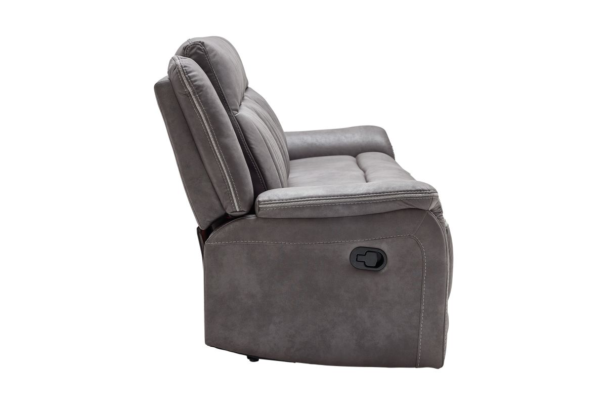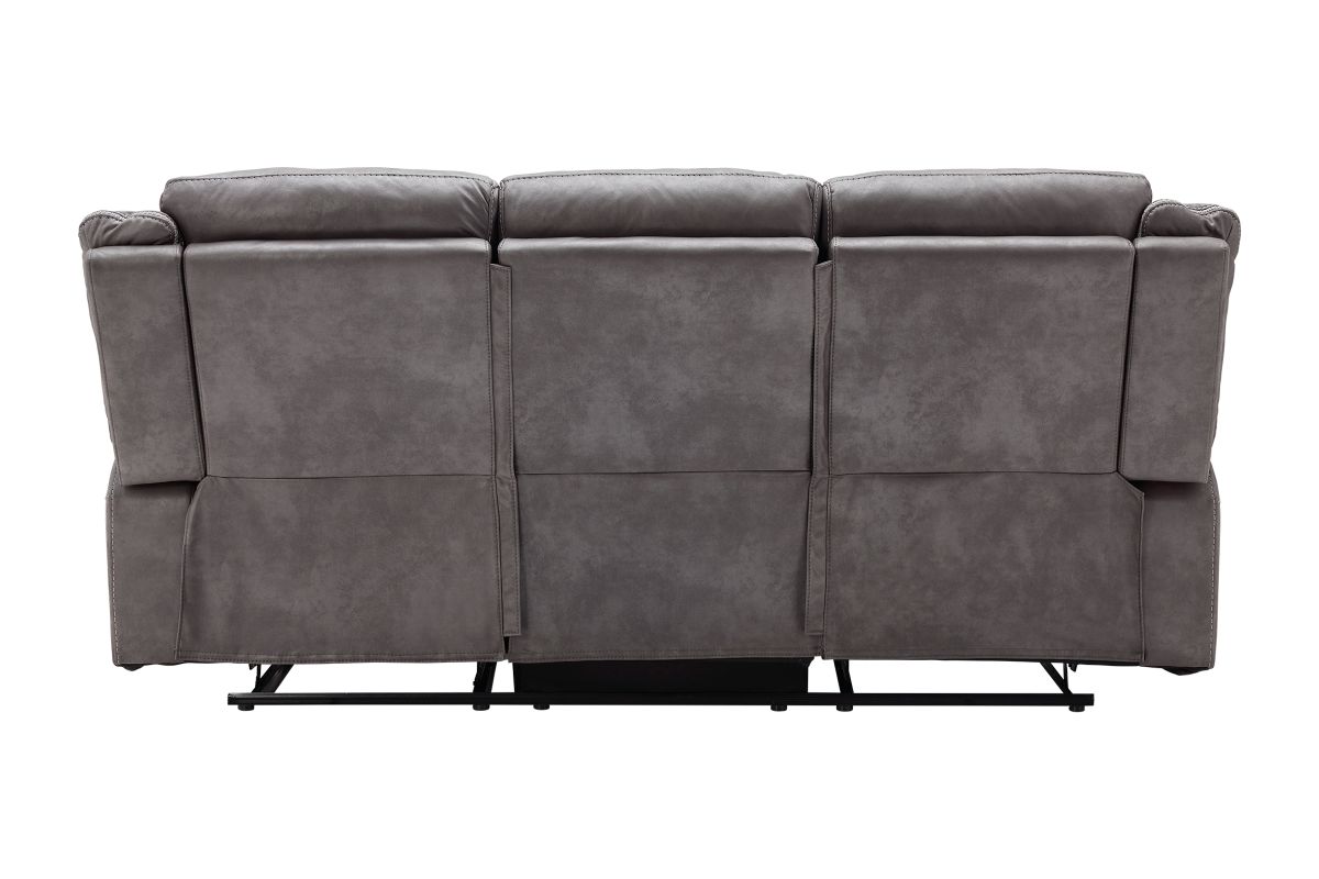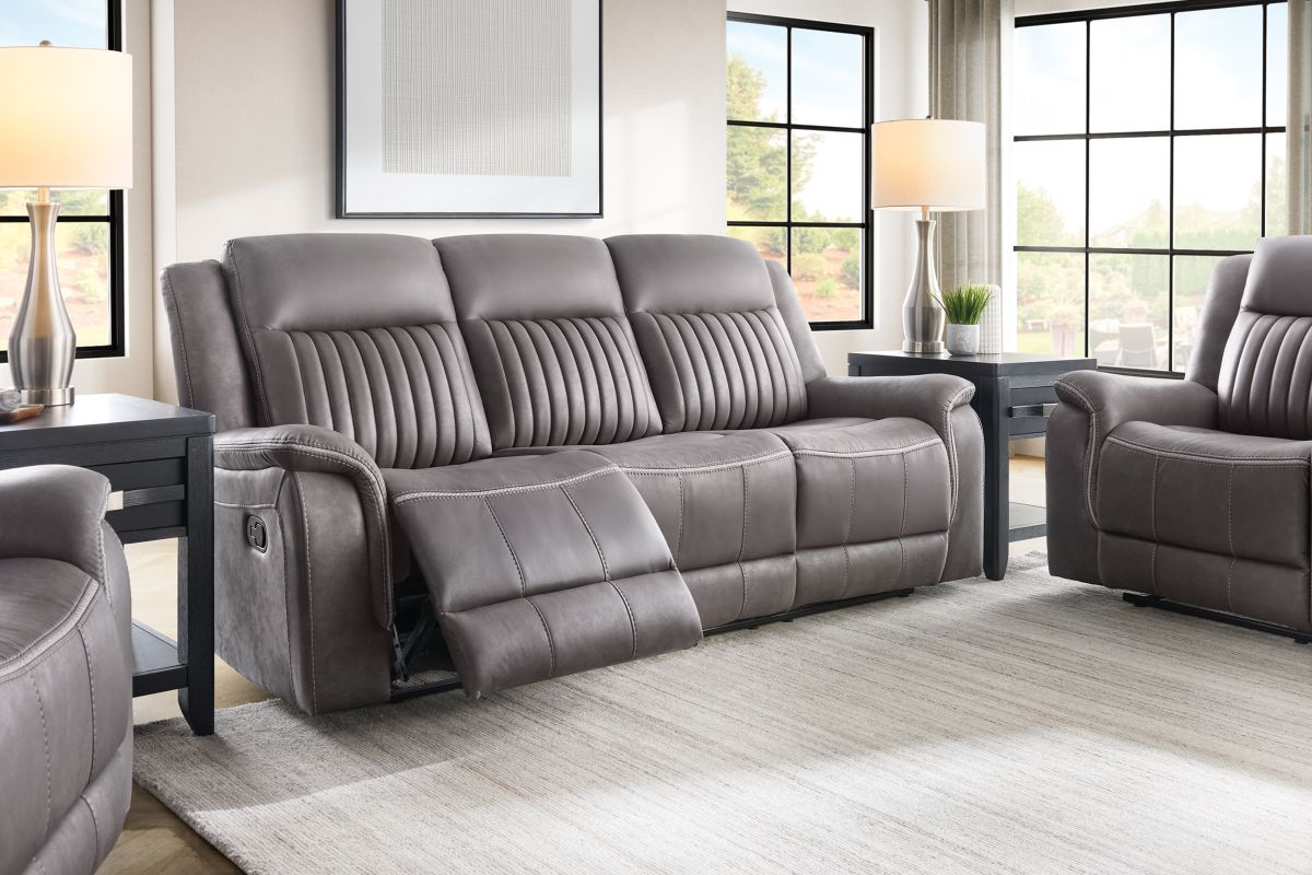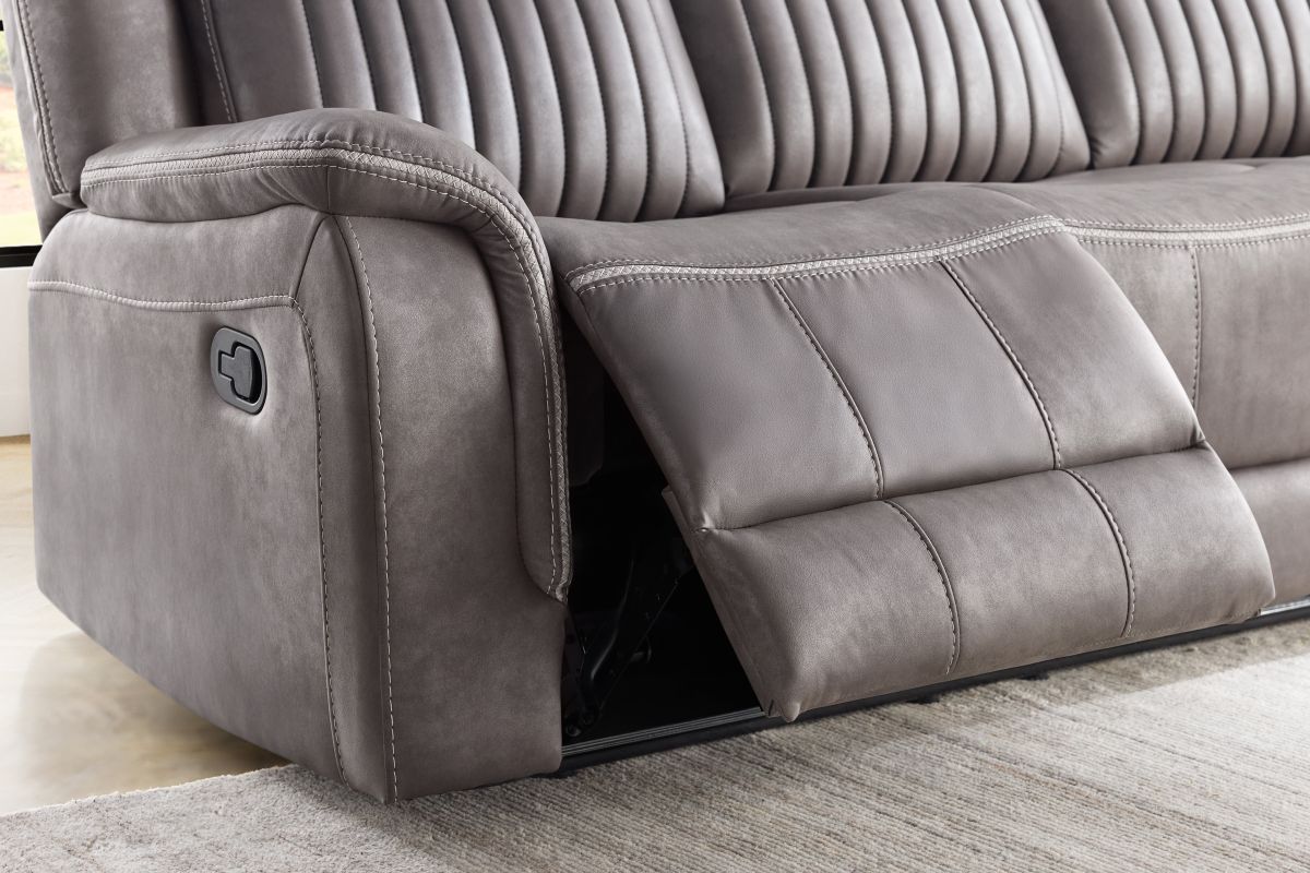 Upgrade your relaxation experience with the Tyson living room collection, designed for both style and ultimate comfort. Upholstered in sleek gray faux leather, this set includes a reclining sofa, console loveseat, and recliner, offering plush seating with a contemporary edge. Featuring effortless reclining at the pull of the lever, this set provides customized comfort with high-density cushions and supportive backrests for all-day relaxation. The loveseat includes a convenient storage console with built-in cup holders, keeping essentials within reach. Whether you're hosting guests or unwinding after a long day, the Tyson reclining set brings modern luxury and everyday functionality to your home.