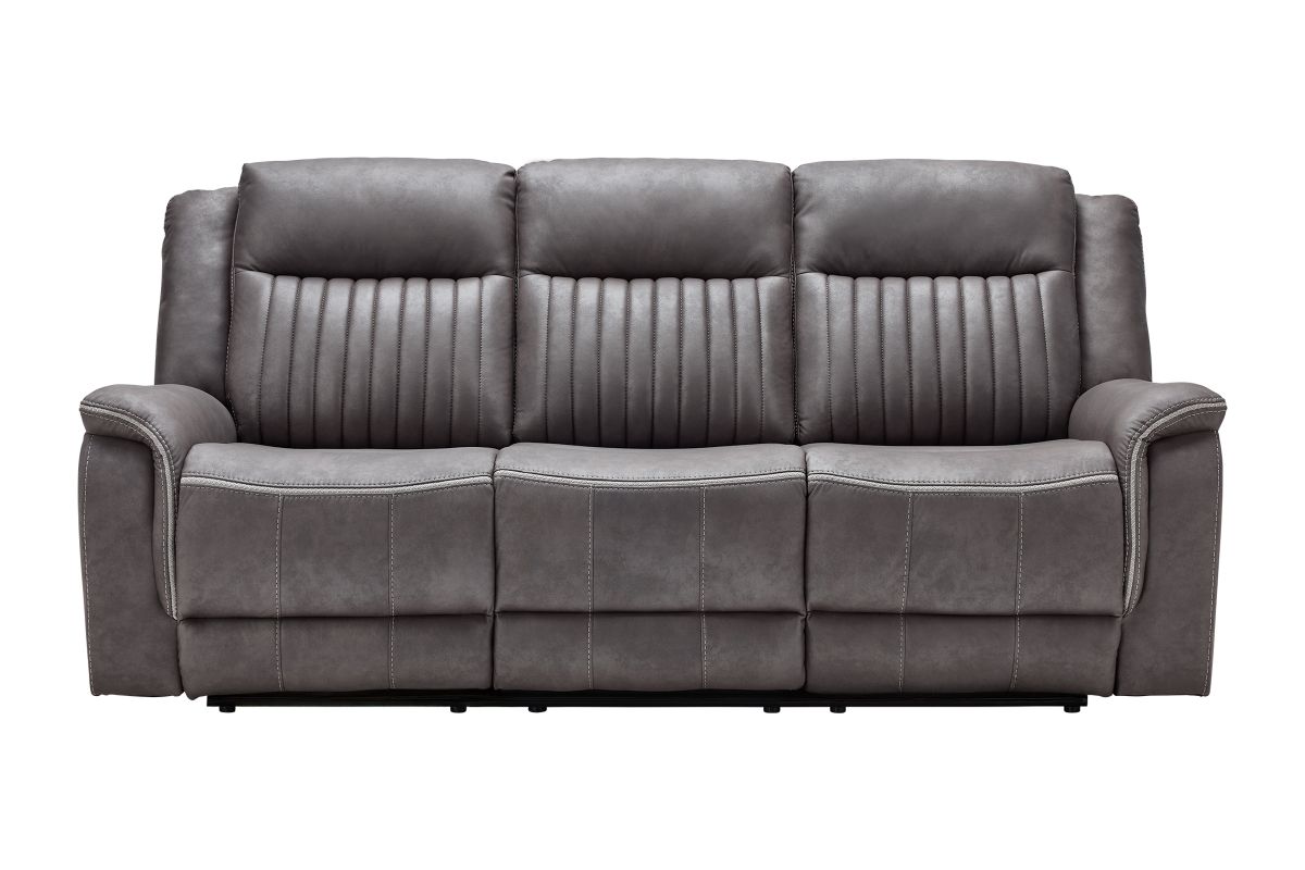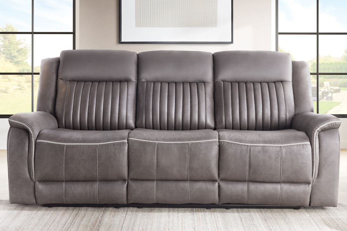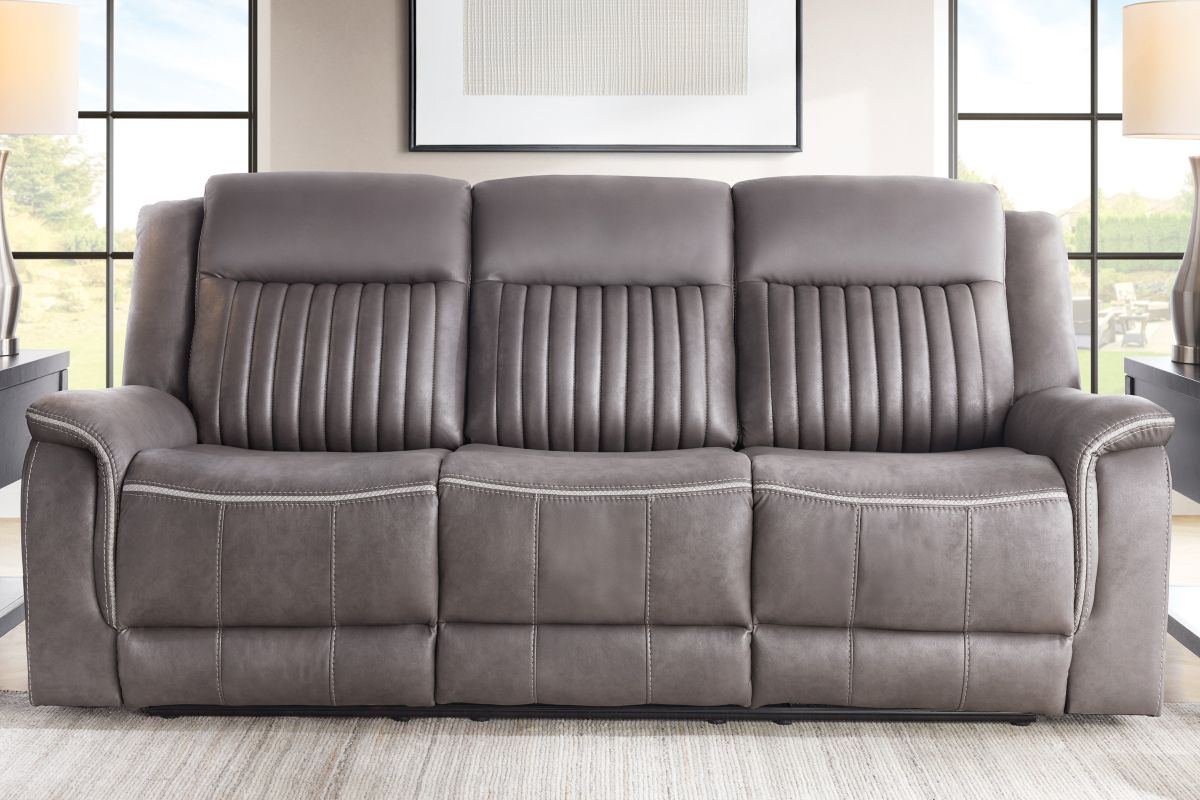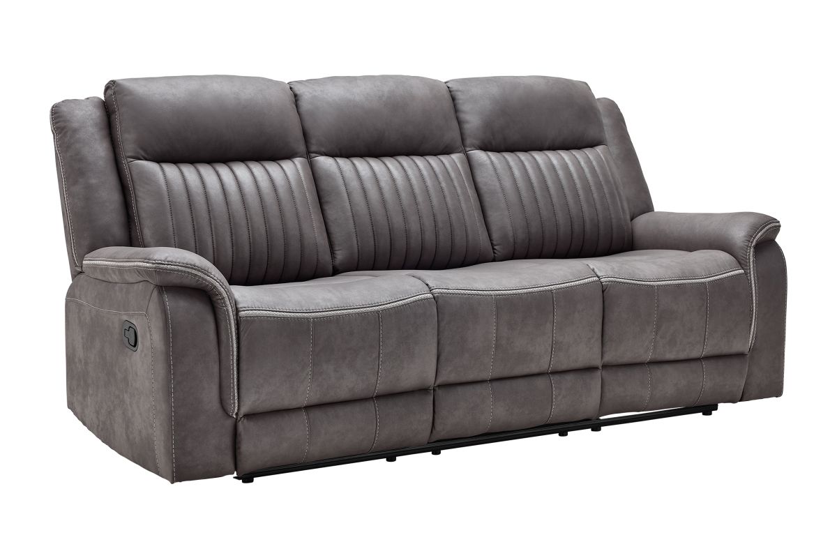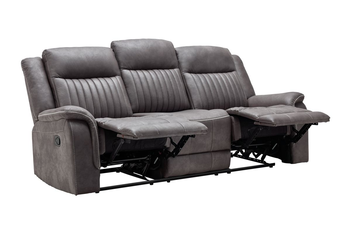 Upgrade your relaxation experience with the Tyson living room collection, designed for both style and ultimate comfort. Upholstered in sleek gray faux leather, this set includes a reclining sofa, console loveseat, and recliner, offering plush seating with a contemporary edge. Featuring effortless reclining at the pull of the lever, this set provides customized comfort with high-density cushions and supportive backrests for all-day relaxation. The loveseat includes a convenient storage console with built-in cup holders, keeping essentials within reach. Whether you're hosting guests or unwinding after a long day, the Tyson reclining set brings modern luxury and everyday functionality to your home.