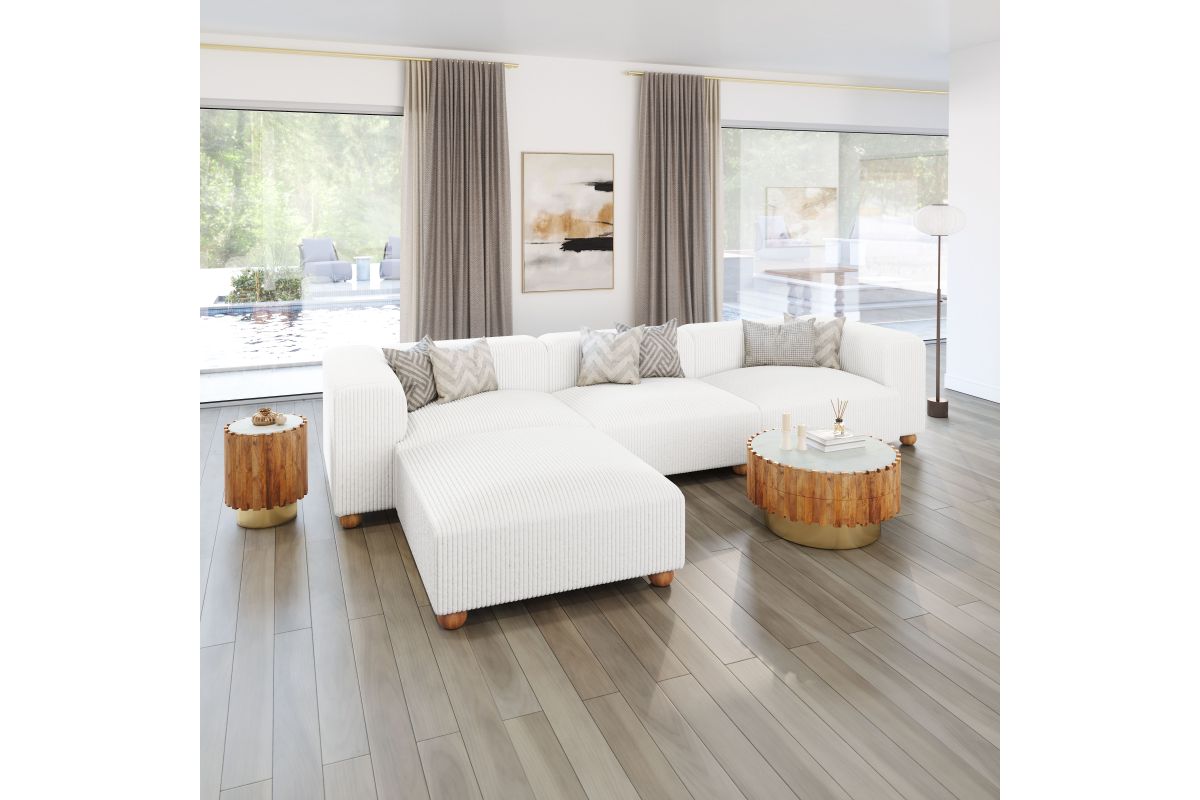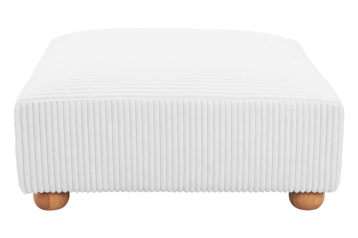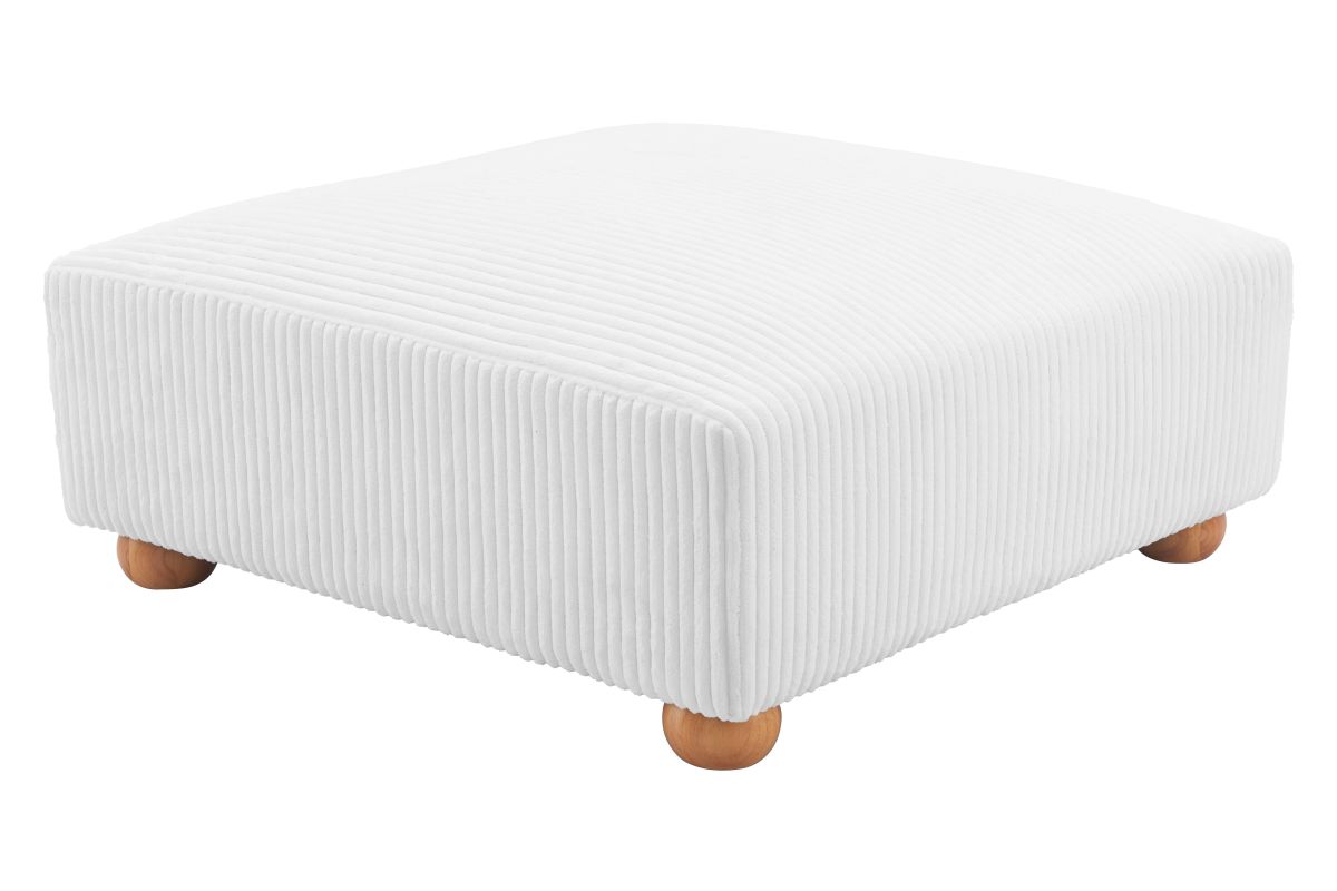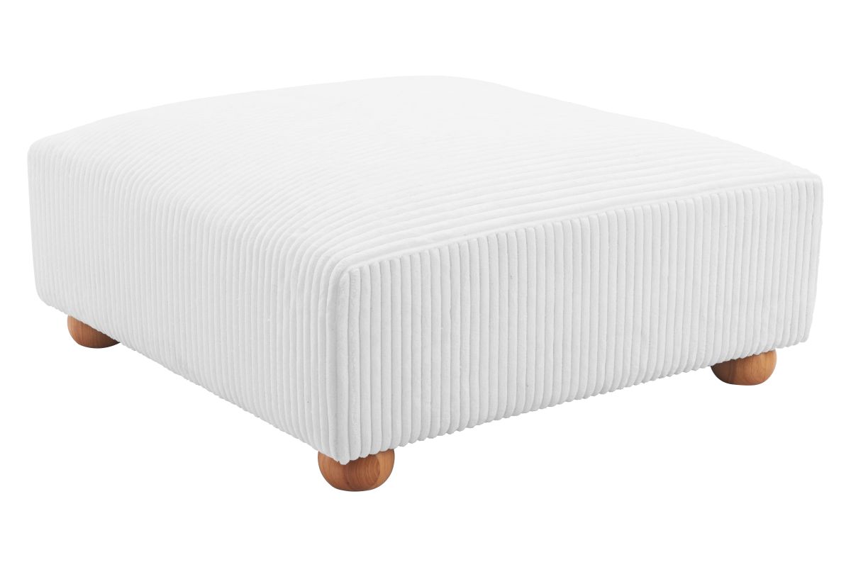 With its thick and lush cord-style fabric, the Tayte Ottoman adds a new level of sophistication to any space.� The Tayte has a wood frame construction with foam supported by springs and bands with solid wood feet.� A large and extremely comfy piece with a modern shape, it makes any living space glam and exciting.