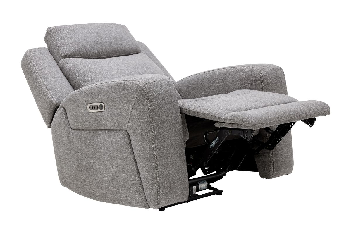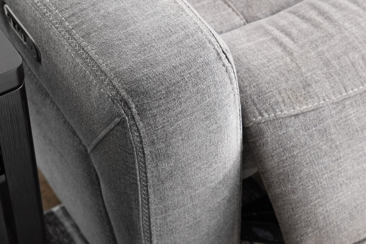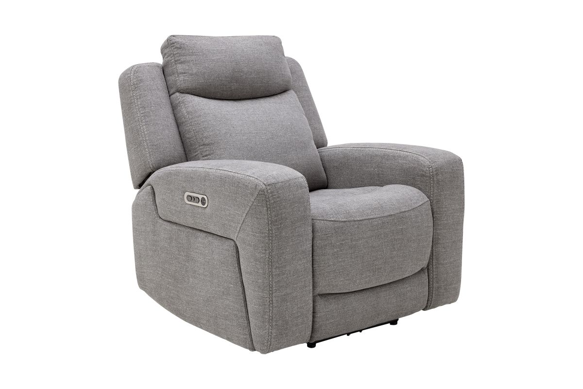 Lasting comfort is easily attainable with the Summit dual power recliner with power headrest. Featuring Zero Gravity recline, Ridge envelops you in relaxing support with a contoured bucket seat, waterfall chaise and high-divide back. Wide track arms and cross-stitching detail add to its timeless, casual appeal. Upholstered in a stain-resistant, granite gray performance fabric, the Ridge recliner offers affordable style and practicality to support active families.
