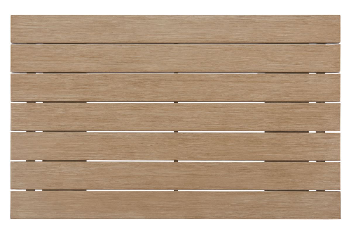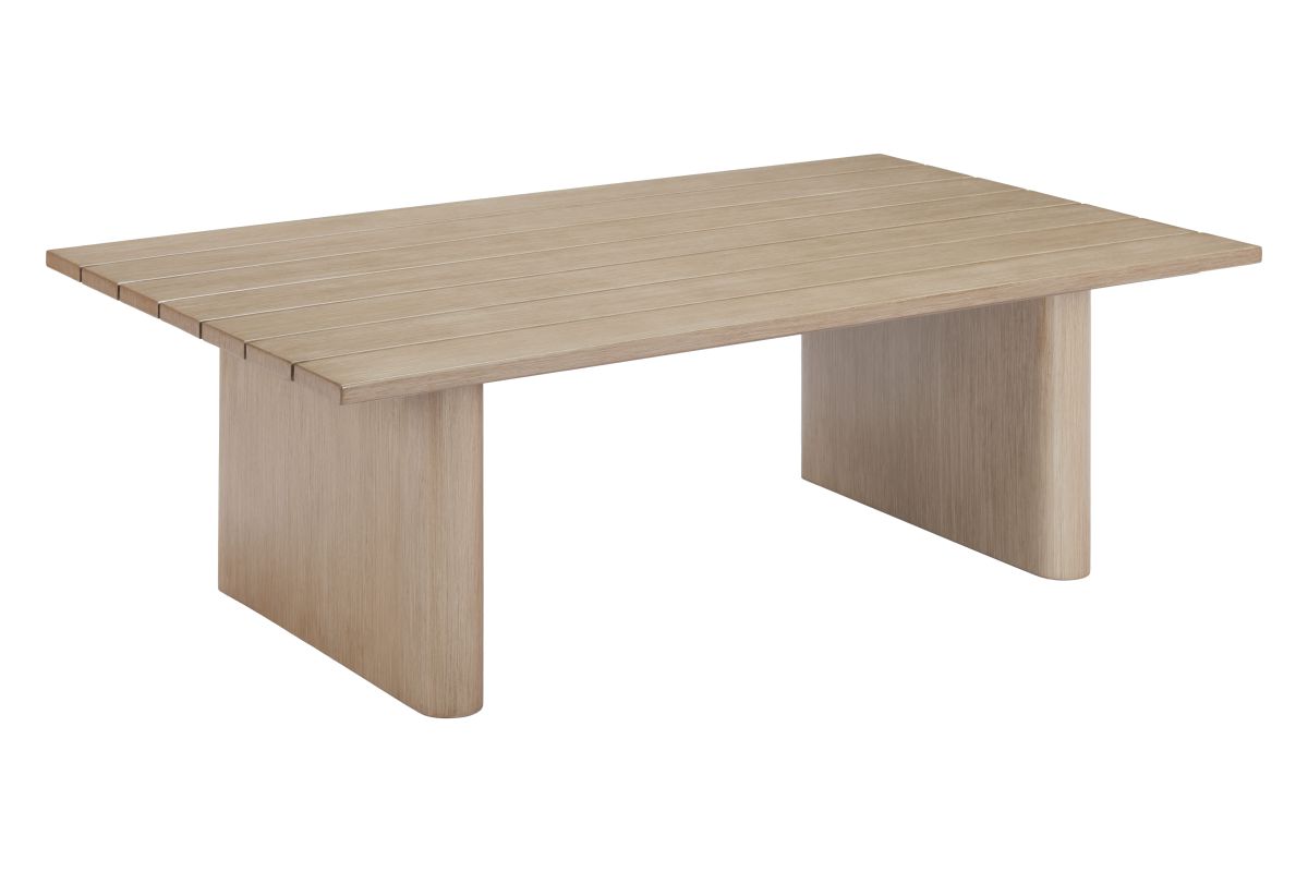 The Duna Coffee Table in Natural offers a blend of modern design and natural beauty. Made from durable aluminum, this table is suitable for both hospitality and residential use. Its clean lines and urban aesthetic make it a versatile piece for any decor.