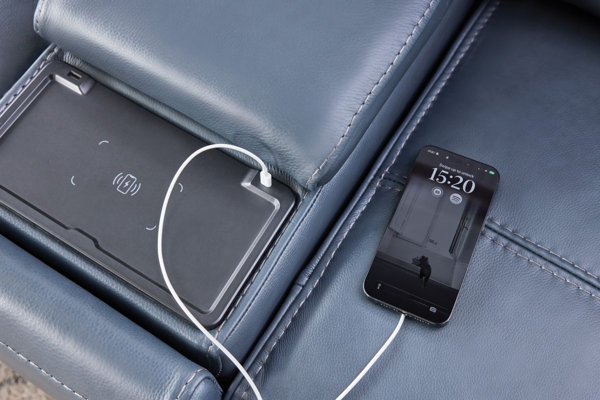 Elevate your comfort and style with this luxurious leather dual power reclining collection, available in both sofa and sectional configurations. Designed to redefine relaxation, each seat features zero gravity reclining technology, allowing you to recline into a weightless position that reduces stress on your body and provides unparalleled comfort. Wrapped in sleek, top-grain leather, the Jaxon exudes modern sophistication and durability, perfect for any living room. The console piece includes wireless charging capability, keeping your devices powered while you unwind. Generous, padded cushions and tailored stitching create a plush, yet polished look that suits contemporary and transitional spaces alike.