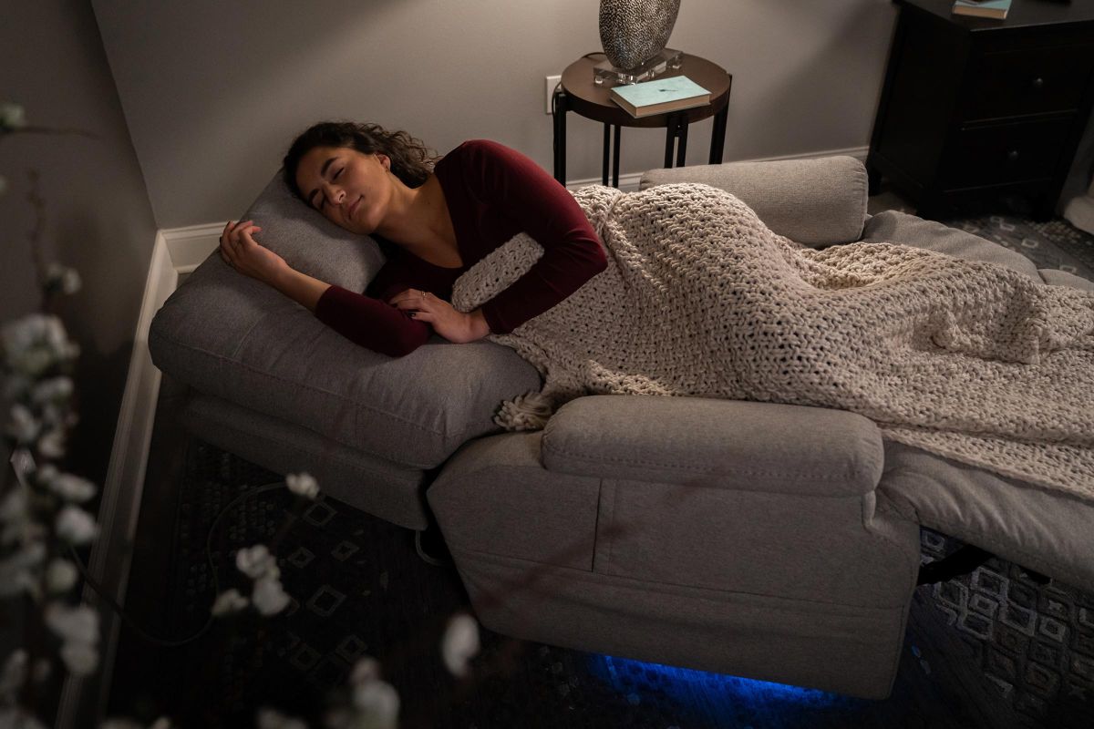 - Motion-activated LED base lighting turns on when you approach or get out of the recliner, and can be adjusted in brightness and color in the MyRecline app