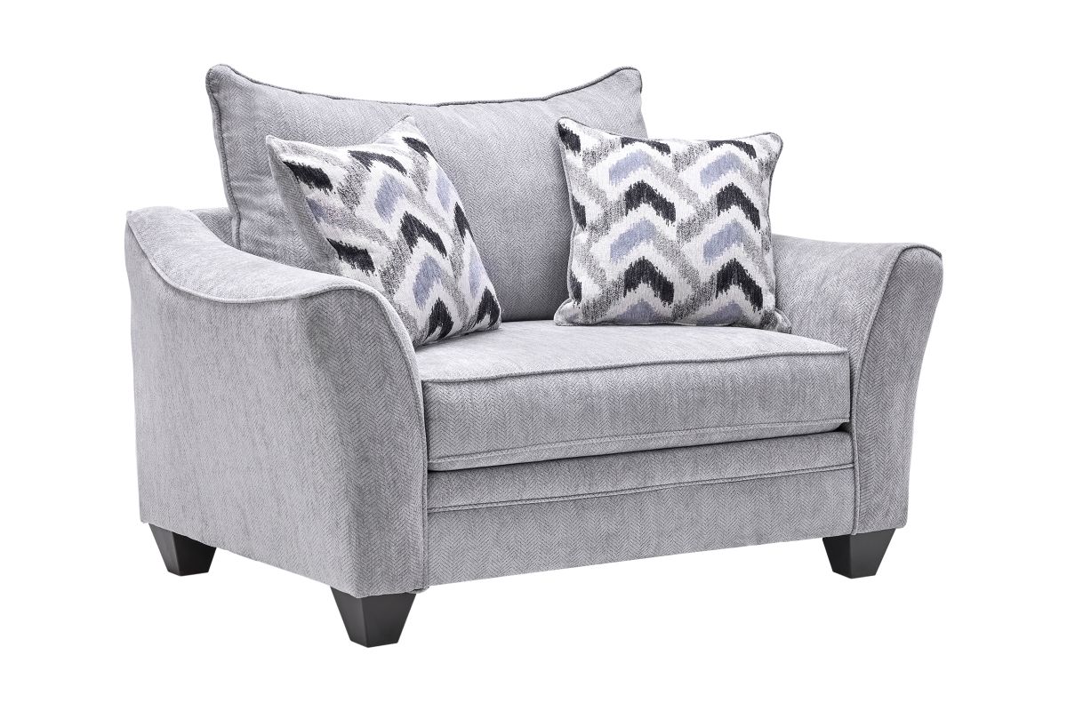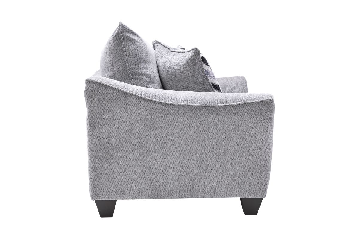 Transform your space with the Carson living room collection, featuring a sofa, loveseat, chair and ottoman designed for comfort and modern style. Upholstered in a soft, grey fabric, this collection is complemented by chic, patterned throw pillows that add a touch of flair. The gently curved arms and sleek tapered legs create a contemporary silhouette, while the plush cushions ensure lasting comfort for relaxing or entertaining. The spacious ottoman doubles as a footrest or additional seating, offering versatility and functionality for any occasion. Perfect for modern living, this collection brings timeless sophistication and cozy charm to your home.