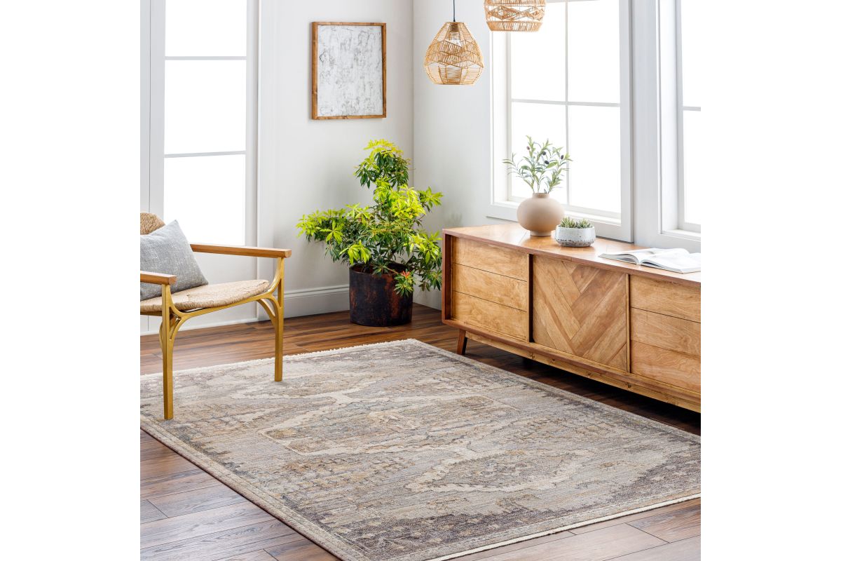 The Aida area rug is the perfect choice for your home. This machine woven polyester rug features a timeless updated traditional style with a fringe detail that adds a touch of elegance. The medium pile is comfortable underfoot and durable enough to withstand high traffic areas in your home. Plus, the rug is made in Turkey for superior craftsmanship and quality you can trust. To complete the look, we recommend pairing this rug with a rug pad (sold separately).