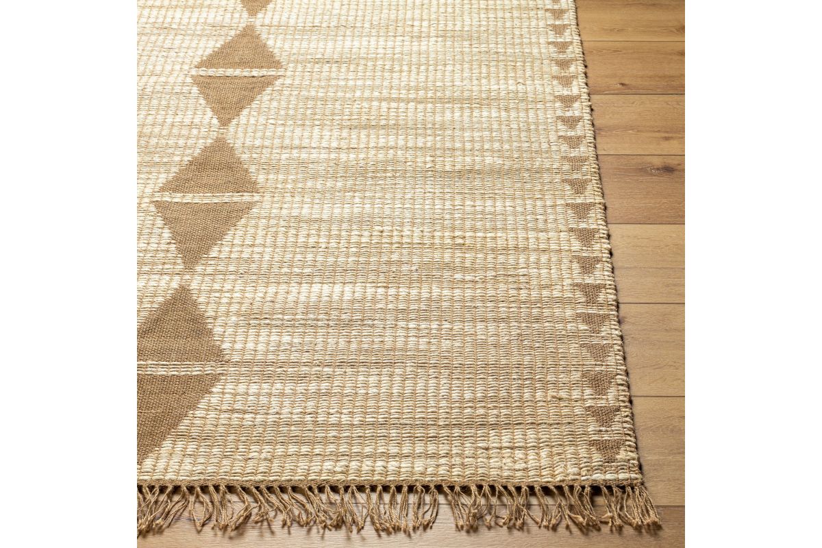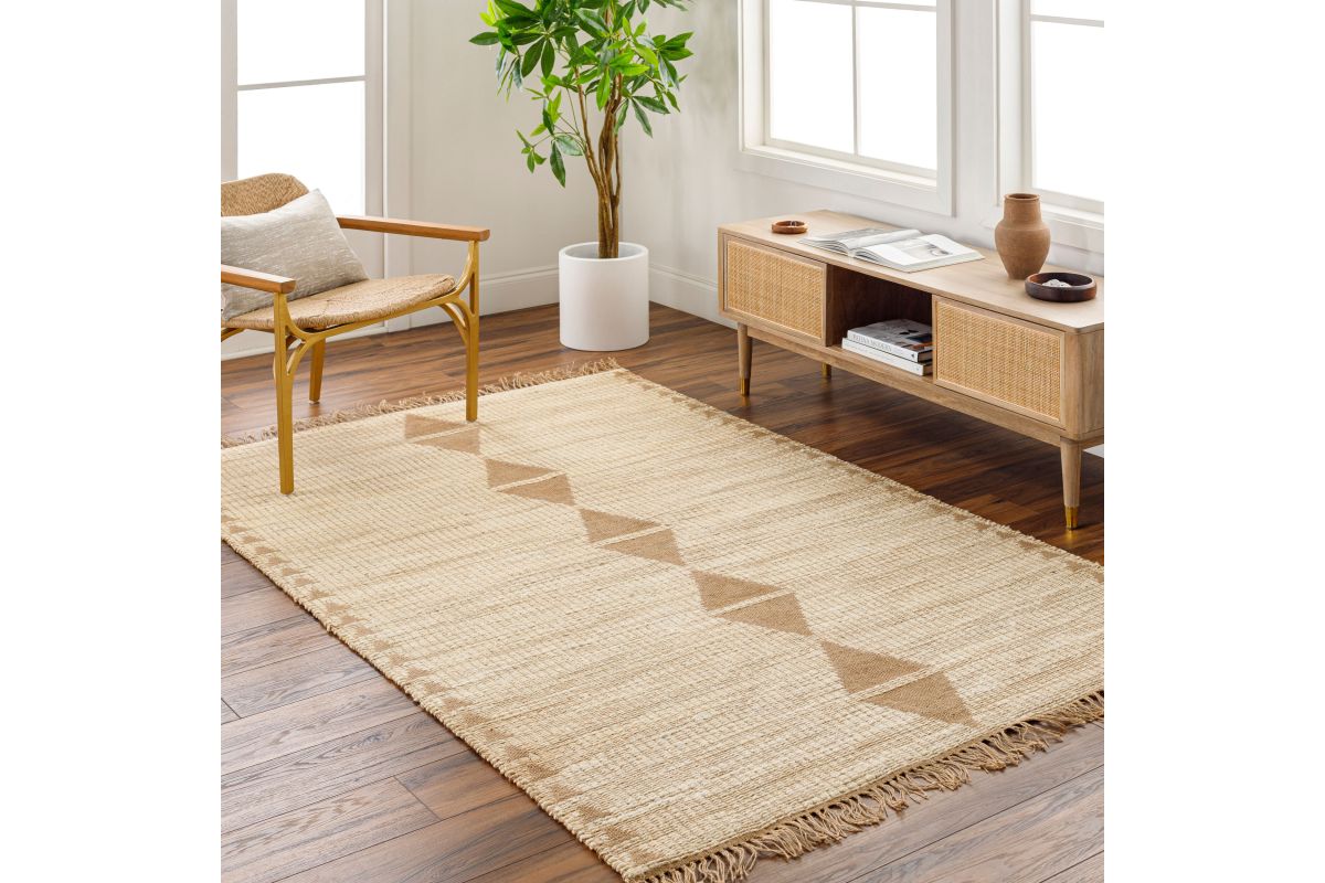 This Alex area rug is the perfect addition to any living space. Handwoven from jute, this rug is durable and will last for years to come. Its no pile design makes it easy to clean and maintain, while its fringe adds a touch of sophistication. The Alex area rug was made in India and is recommended for use with a rug pad. For best results, professional rug cleaning is recommended for care and maintenance.