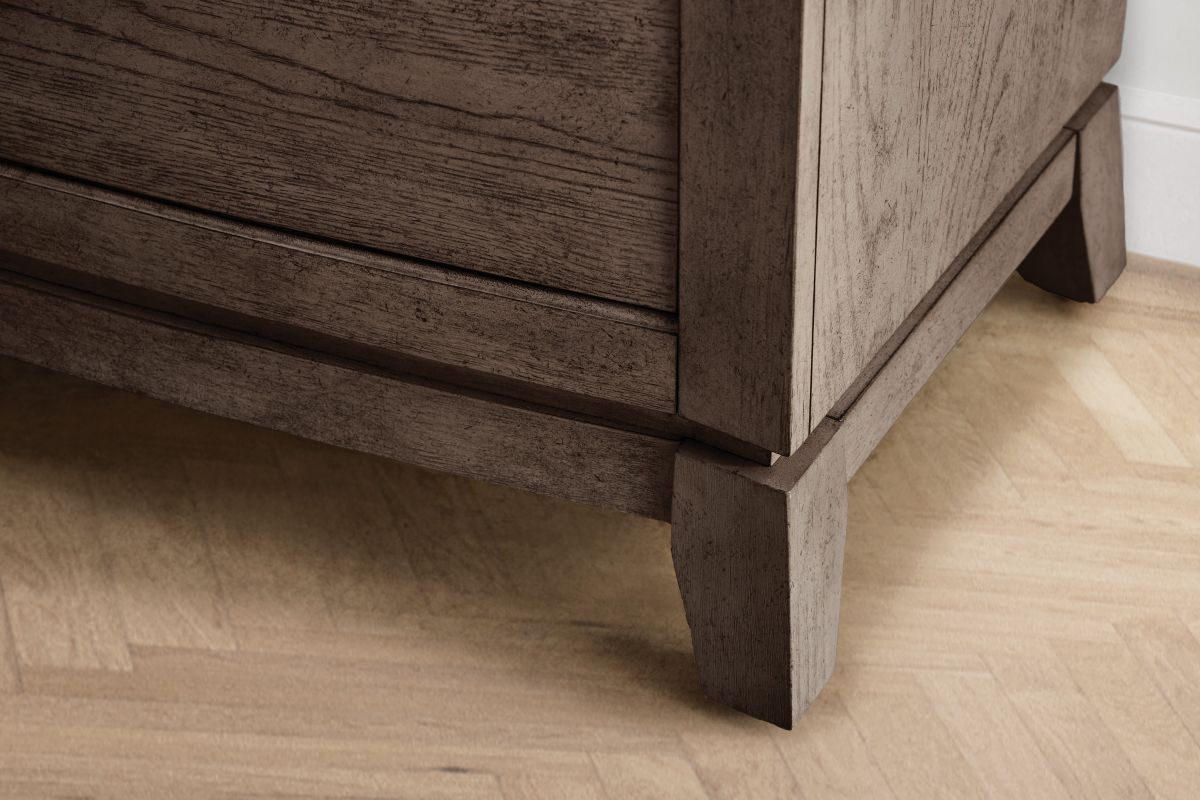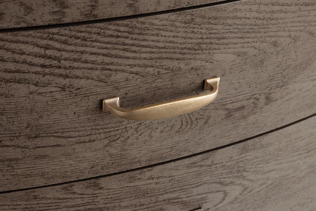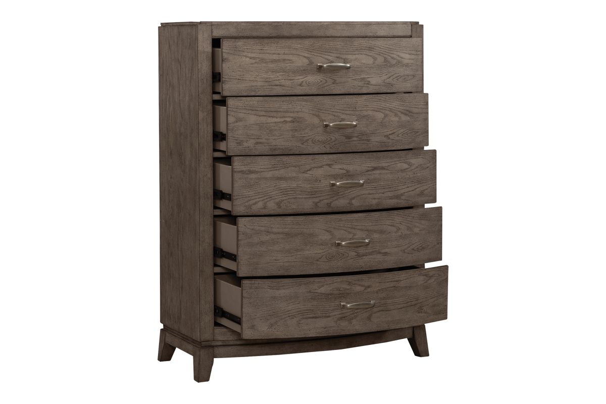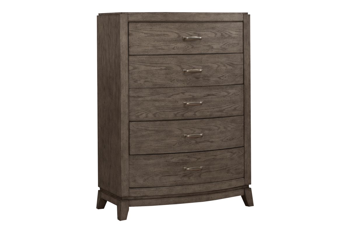 The Beautifully crafted Townsend 5-drawer dresser features antique brass pulls and a burnish Chocolate finish, combines classic elegance with practical storage, making it a perfect addition to any bedroom.