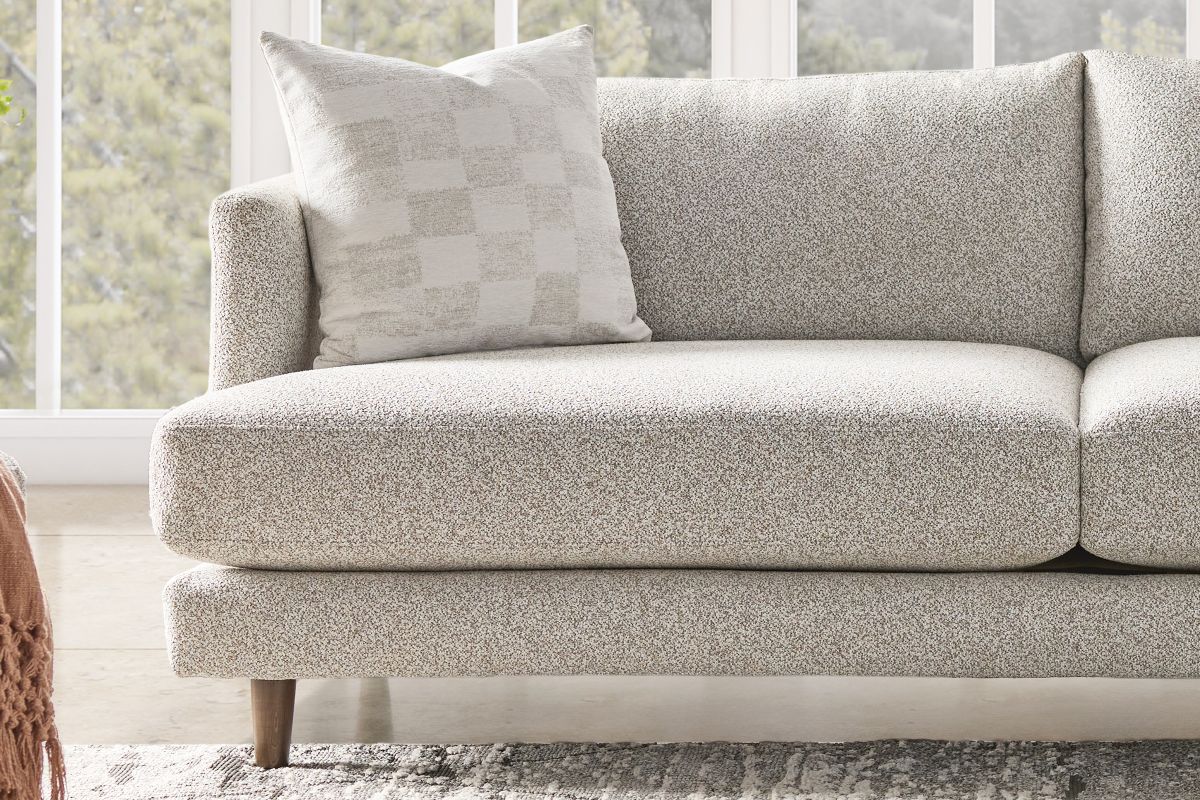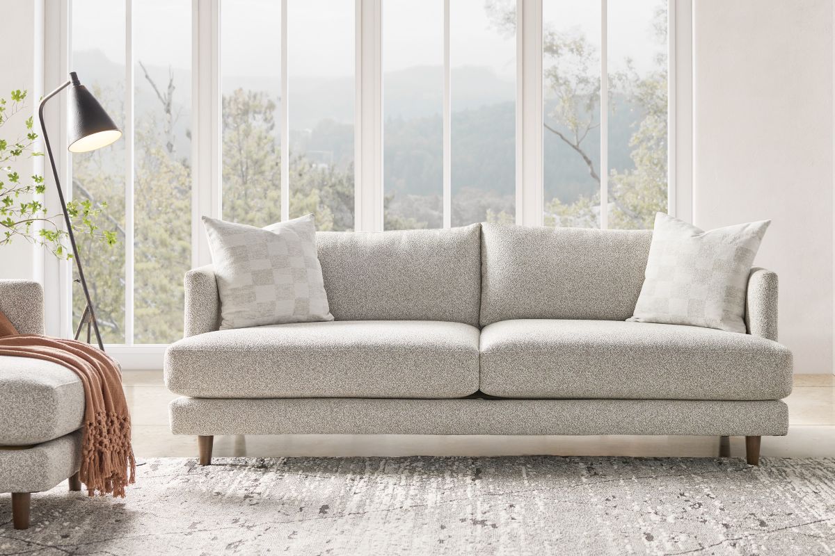 The Harlan Sofa delivers a striking balance of modern sophistication and timeless design, making it a standout centerpiece in any living space. Defined by its crisp track arms and tailored lines, the silhouette forms a classic tuxedo shape that nods to the glamour of the Art Deco era while embracing the sleek minimalism of contemporary style. The clean horizontal lines add a sense of visual stability and elongated form, creating an elegant yet grounded presence.