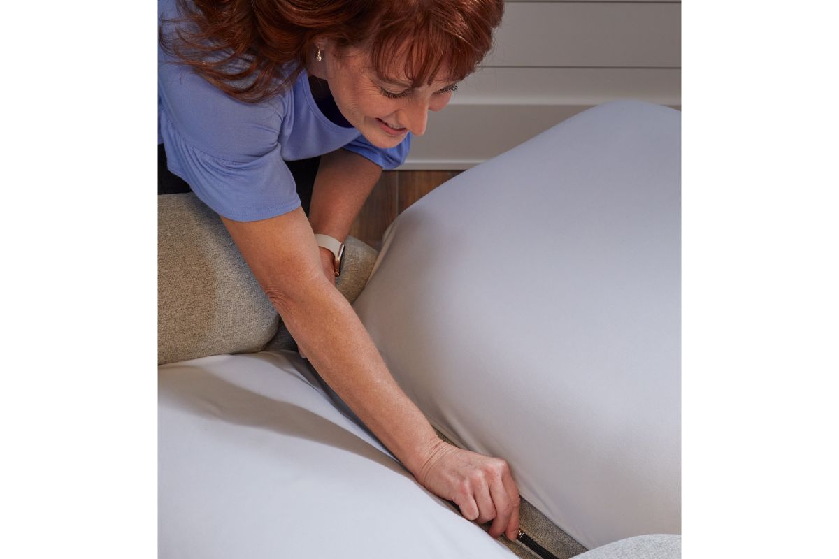 • Fitted sheet pieces secure underneath the backrest and seat zipper to prevent sheets from sliding around