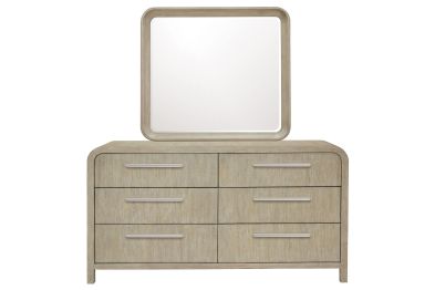 Bring effortless elegance and modern charm to your bedroom with this 6-Drawer Canyon Dresser beautifully crafted with rounded corners and a smooth buff finish. The sleek design is elevated by distinctive silver cloud hardware, adding a touch of sophistication to its clean lines.