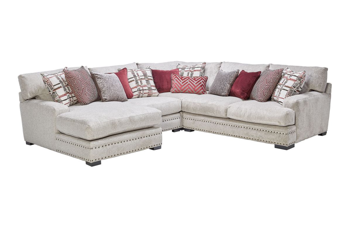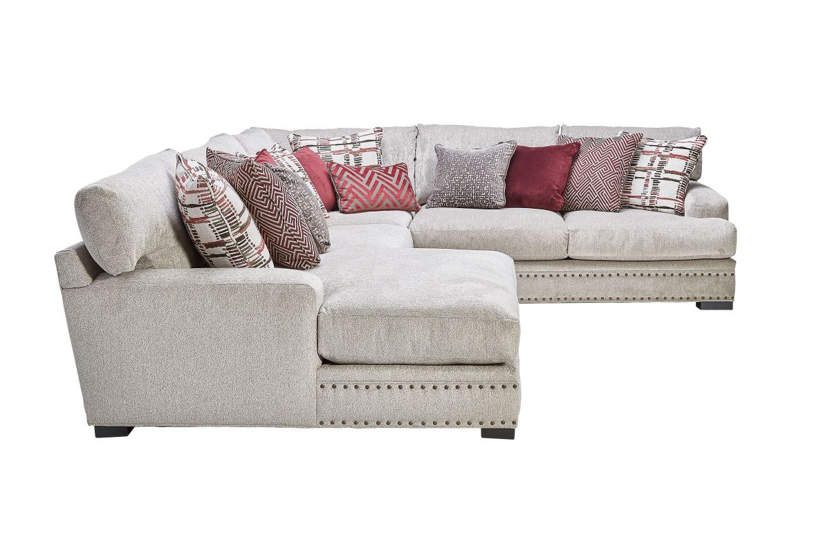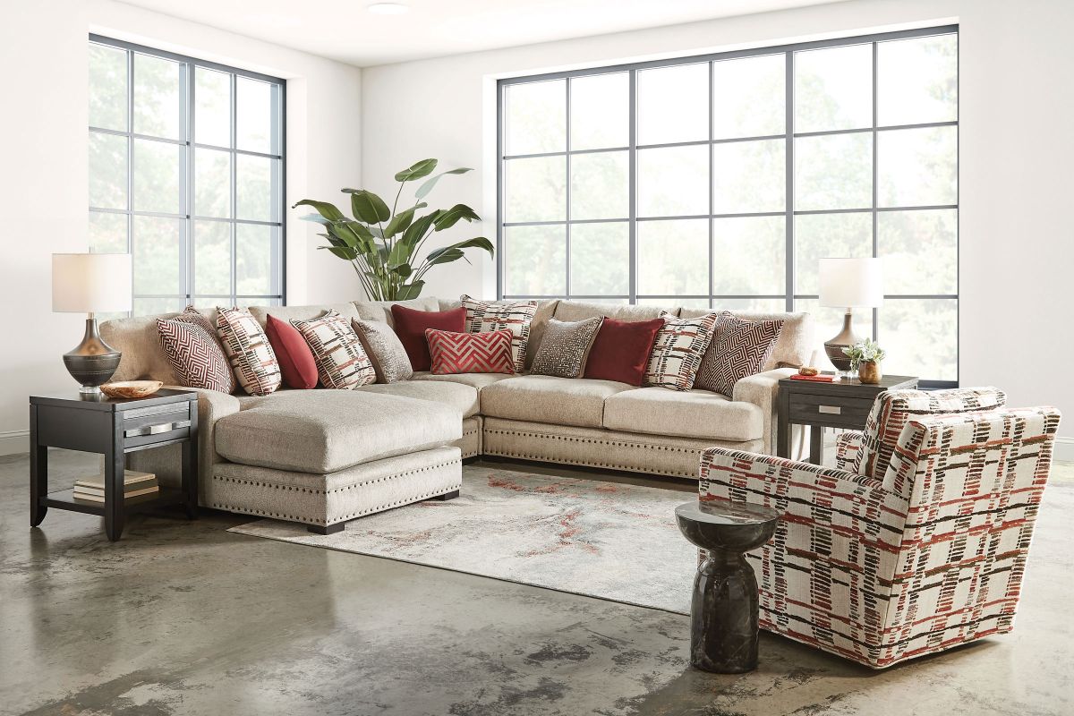 The Bulova Seating Collection is the perfect large-scale centerpiece for your living space, blending contemporary appeal with deep seated comfort. The classic style of the track arm paired with the colorful toss pillows offers a stylish yet sophisticated detailing. Proudly crafted in the USA, this oversized seating collection comfortably sits the whole family. The neutral beige tones of the fabric allow for this collection to blend with a variety of color palates while the stylish toss pillows give the seating ensemble a pop of color. Host endless family movie nights on the stylish Bulova Seating Collection.