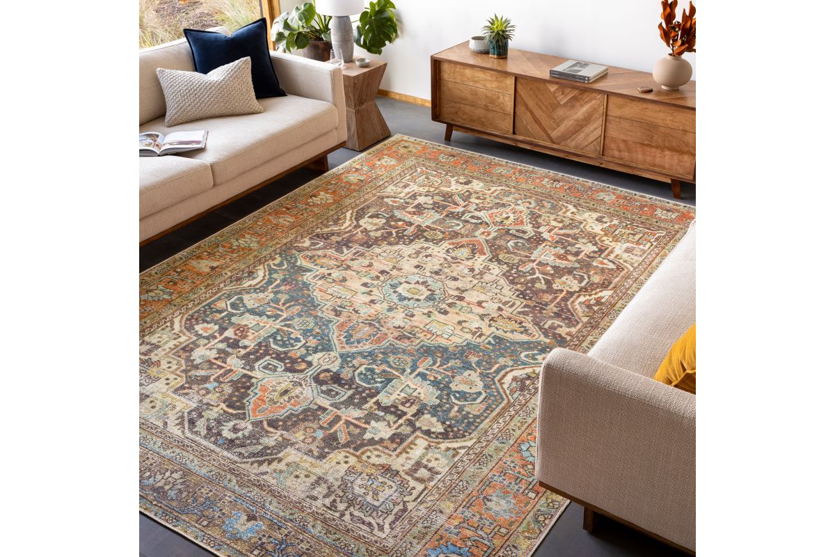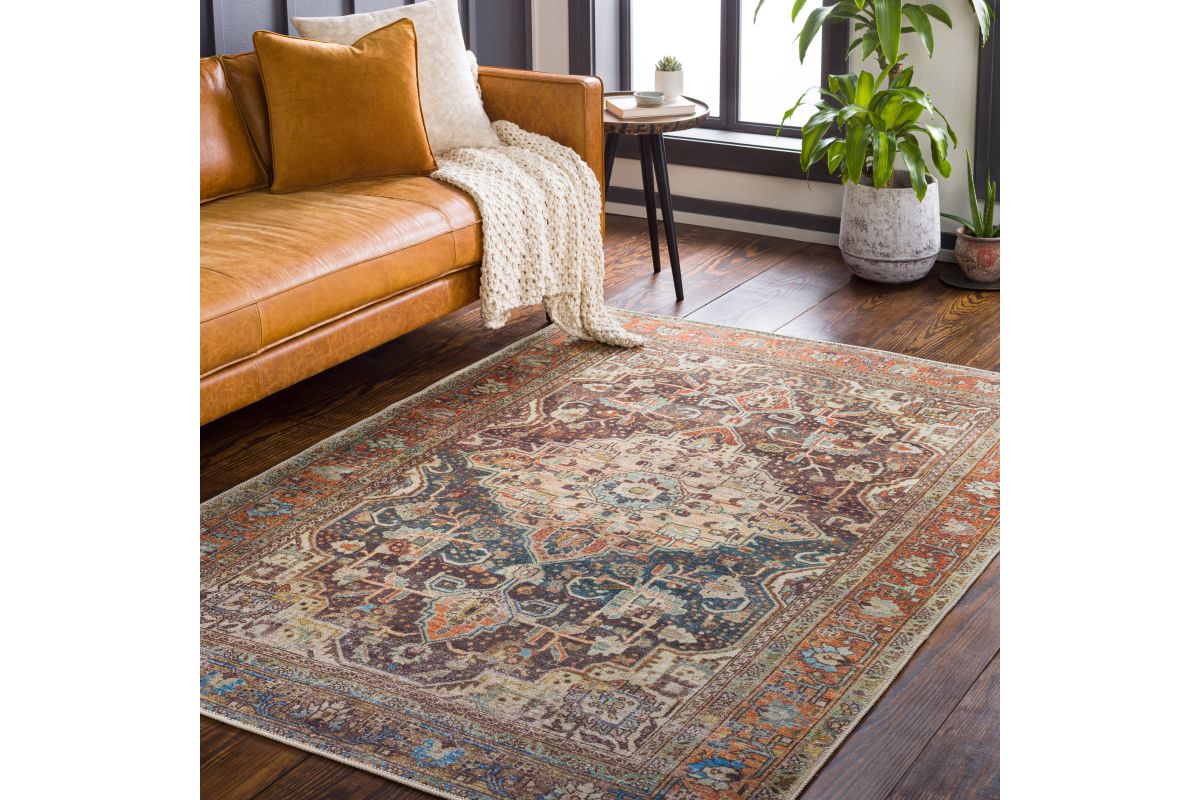 The Amelie area rug is the perfect addition to any home. Its updated traditional style features a Chenille-Polyester construction that is machine woven in Turkey, making it both beautiful and durable. With no pile, this rug is great for high traffic areas and can withstand years of wear and tear. The care instructions are easy ? just machine wash cold on delicate cycle, line dry and you?re done! Make your home more inviting with this timeless area rug from the Amelie collection today!