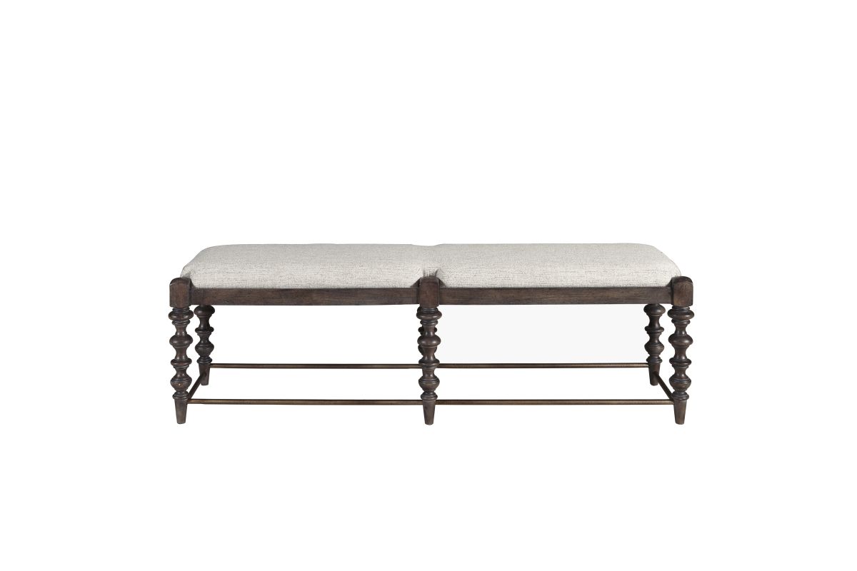 Add a comfortable and luxurious touch to your bedroom with the Revival Row Bed Bench. Intricately carved legs in a Chimney Smoke finish and a neutral-colored upholstered seat create a harmonious blend of elegance and comfort. Whether placed at the foot of a bed or in a dressing area, this bed bench becomes a versatile and stylish addition to any room.