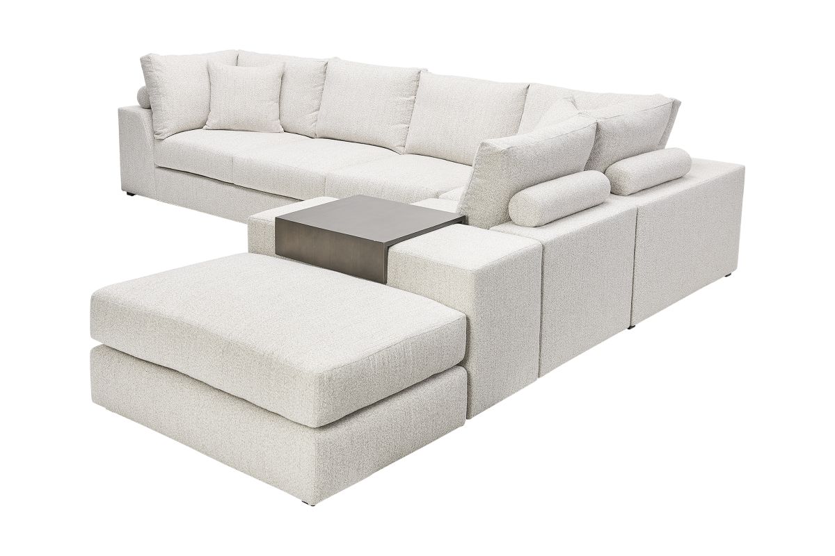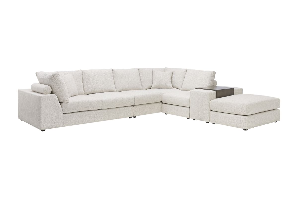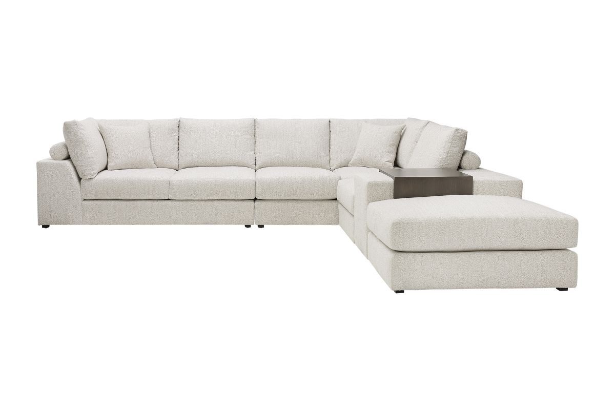 Update your living space with the inviting designs of the Lucca 5-Piece Sectional by Vanguard. This deep seated, contemporary sectional offers opulent amounts of space for you and your family without compromising style. The sectional's clean, crisp back cushions add visual elegance while the bolstered pillows on the back of the frame deliver plush and stable support. The sleek and smart profile of the Lucca 5-Piece Sectional by Vanguard combines sophisticated style with casual comfort.