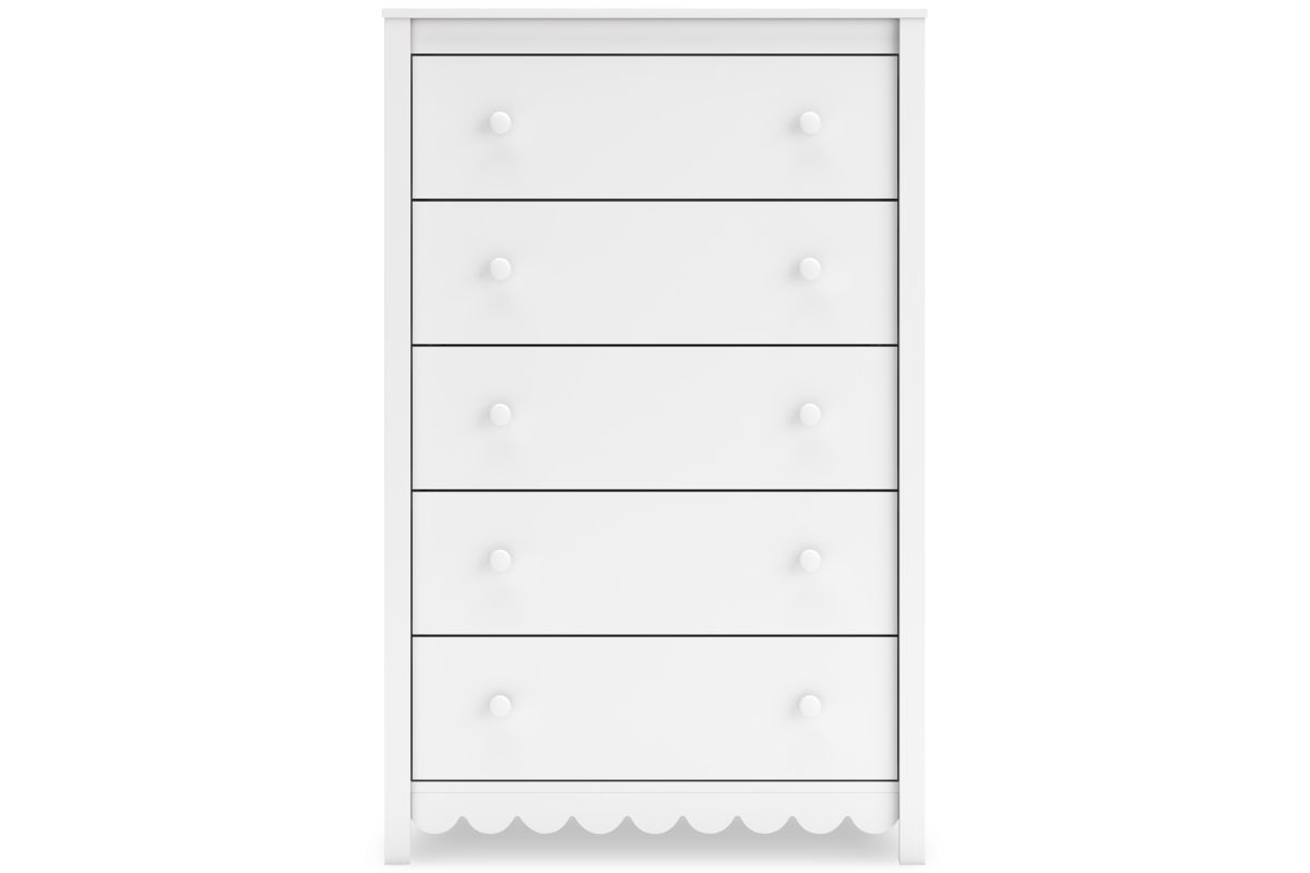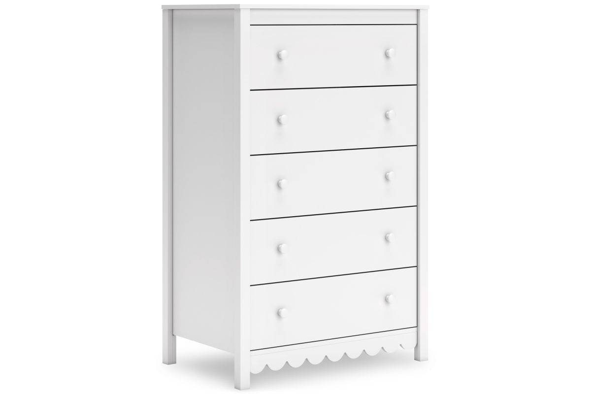Thanks to its playful scalloped design, this chest of drawers is the perfect fit for cottage or coastal farmhouse interiors. The matte white finish serves as the perfect backdrop to showcase your personal taste and creativity. And its spacious drawers let you say goodbye to clutter and hello to well-organized whimsy.