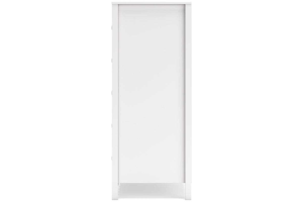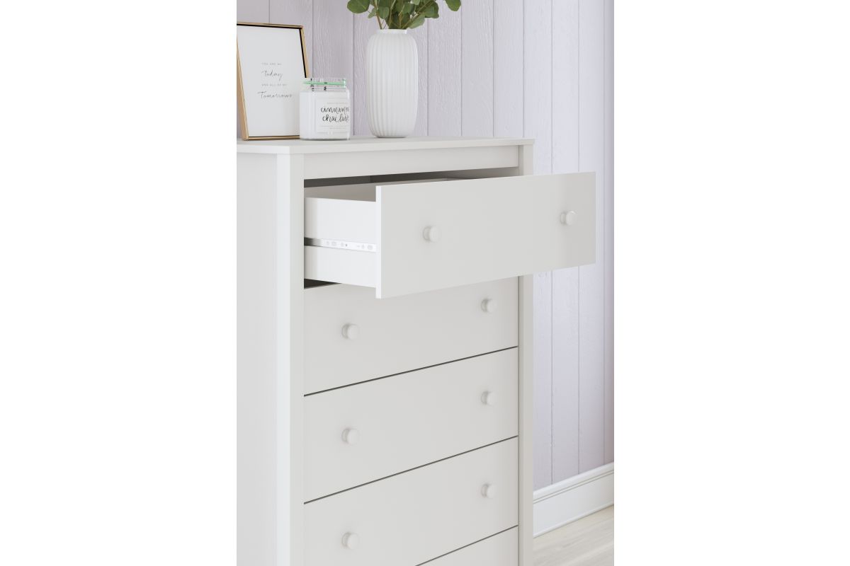 - 5 smooth-gliding drawers with vinyl-wrapped sides and back for durability