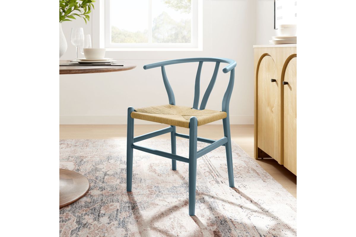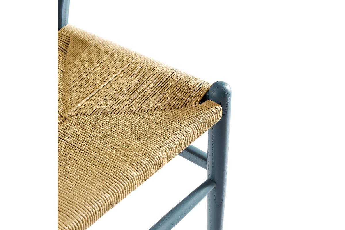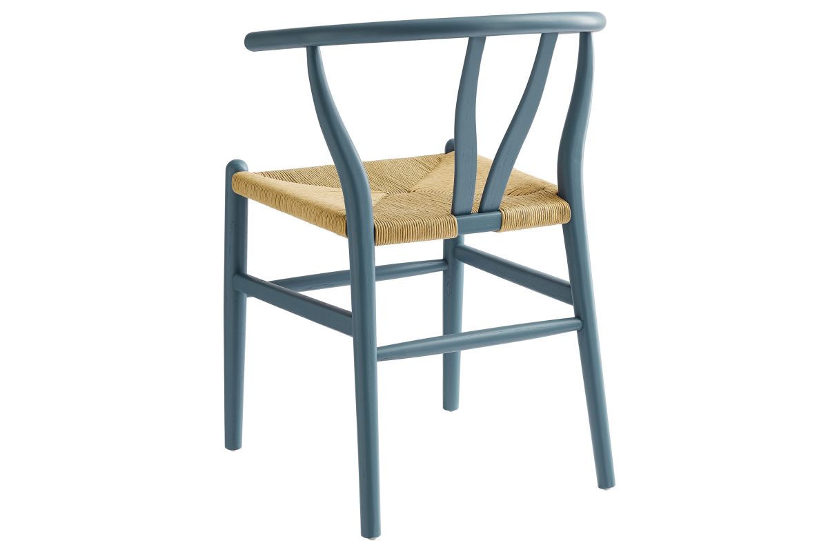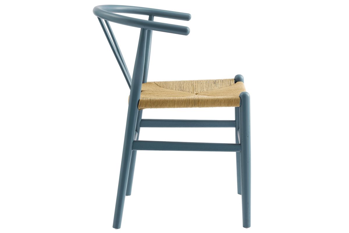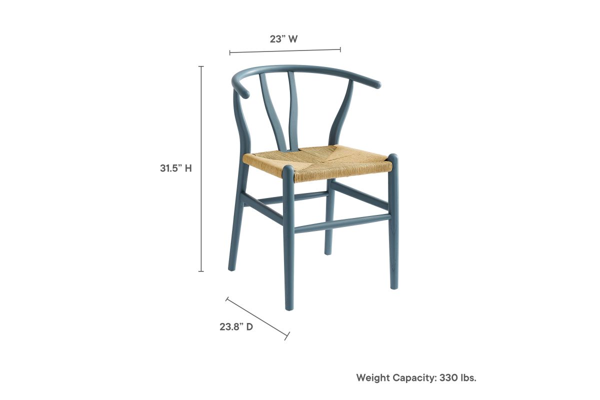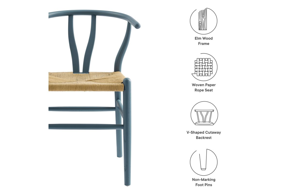Rustic lines form the flowing frame of the Amish Wood Rope Dining Chair. Set with a mid-century style, this rope accent chair combines minimalist aesthetics with natural details, bringing beauty to your kitchen and dining areas. Featuring an elm wood frame with a curved half moon backrest that dips into a distinctive V-shaped cutaway, this dining chair follows a classic retro chair design. Its woven paper rope seat complements the solid wood construction, making this accent armhair perfect for your living room, lounge, bistro, café, or kitchen décor. Arriving fully assembled, the 32-inch tall Amish Dining Chair features an ergonomic design with foot bar supports, offering both comfort and style for long-lasting enjoyment. Rope Chair Weight Capacity: 331 lbs.