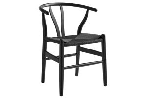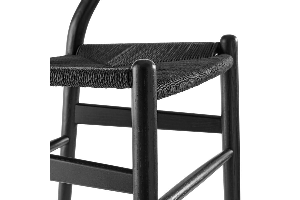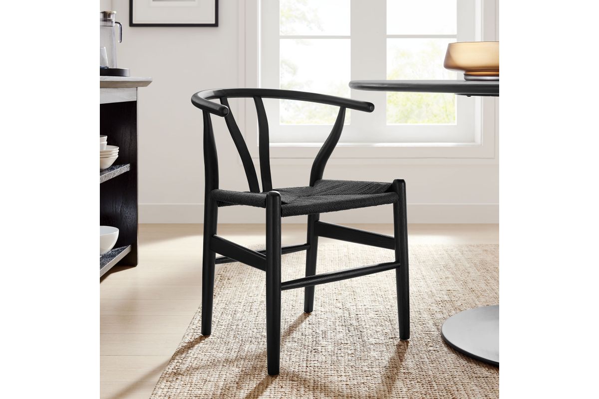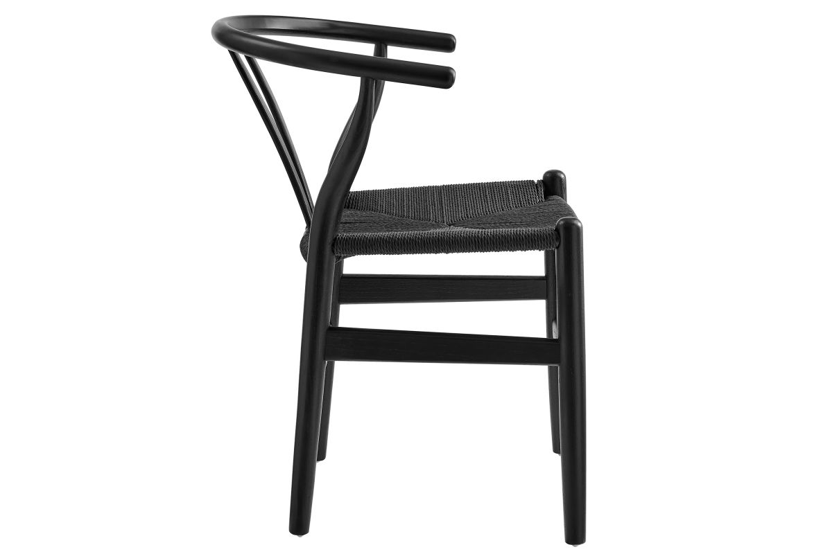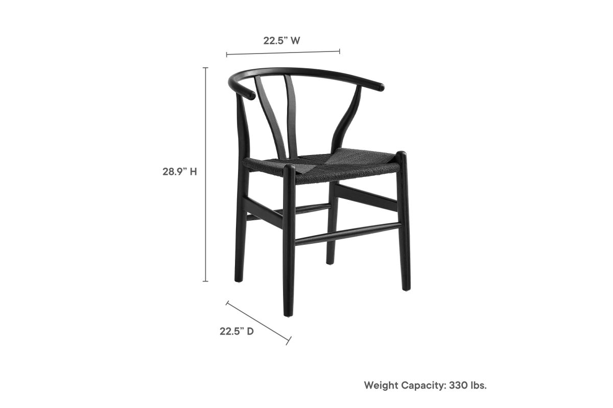 Rustic lines form the flowing frame of the Amish Wood Rope Dining Side Chair. Set with a mid-century style, this rope accent chair combines minimalist aesthetics with natural details, bringing beauty to your kitchen and dining areas. Featuring an elm wood frame with a curved half moon backrest that dips into a distinctive V-shaped cutaway, this side chair follows a classic retro chair design. Its woven paper rope seat complements the solid wood construction, making this armless dining chair perfect for your living room, lounge, bistro, café, or kitchen décor. Arriving fully assembled, the 29-inch tall Amish Side Chair features an ergonomic design with foot bar supports, offering both comfort and style for long-lasting enjoyment. Rope Chair Weight Capacity: 331 lbs.